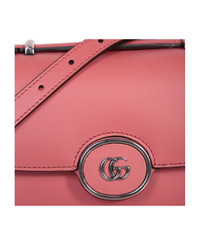 100% calf leather - Lining: calf leather - Adjustable shoulder strap - One top handle - Suede lining - Width 5 cm - Push-lock closure - Silver-tone metal logo detail - Lenght 21 cm - Heigt 10 cm Made in: Italy Color: Pink Size and fit: - W 21 x H 10 x D 5 cm Model number: 739722AABSG6701