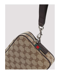 Gucci Beige Polyester Shoulder Bag. Crafted from beige GG canvas, brown leather piping and details, silver-toned hardware, top zip fastening, green and red Web detail on the sides, attachable leather handle, detachable and adjustable shoulder strap, nylon lining. Made in: Italy Color: B Ebony Cocoa Size and fit: - W:23cm H:15cm D:5cm Model number: 834802FAEPS9752