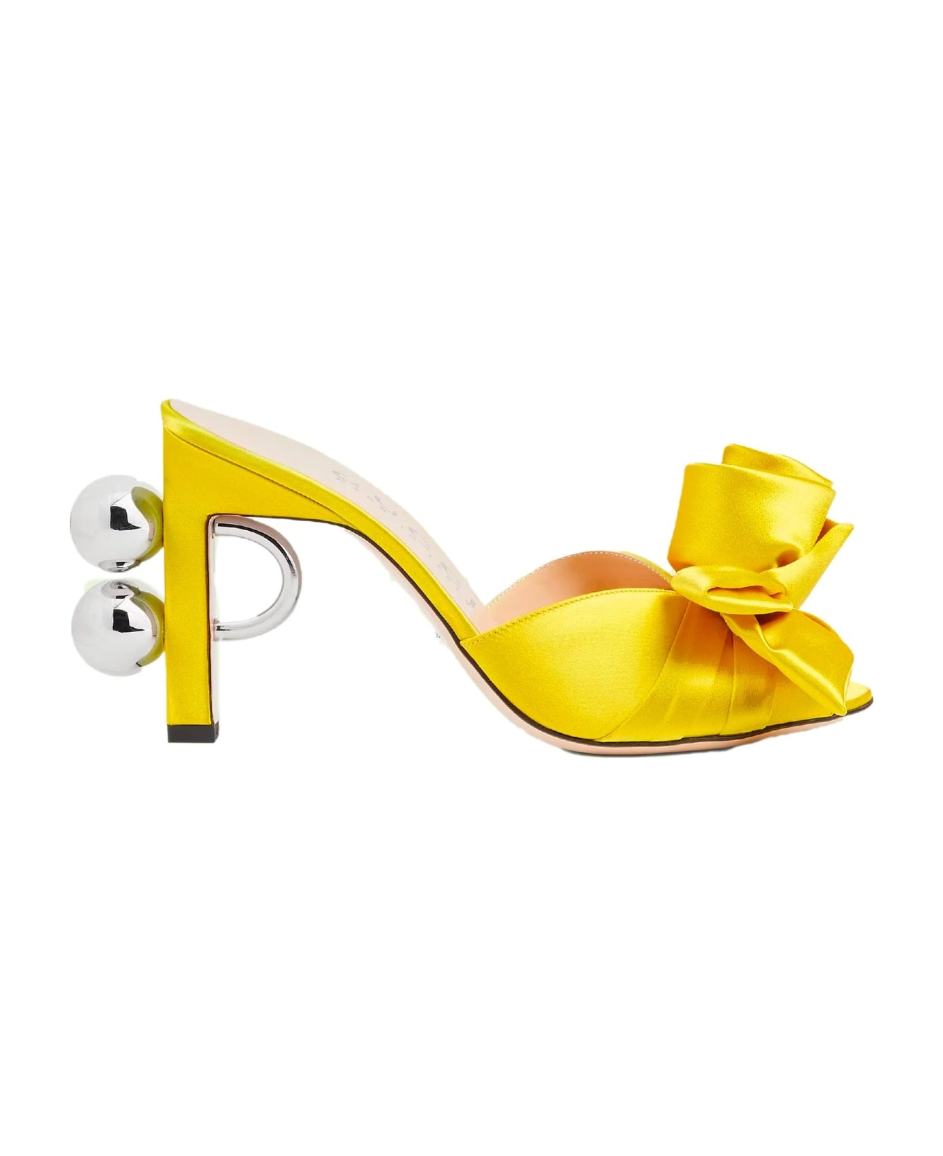 100% silk - Leather lining, insole, sole - Branded insole - Heel 9,5 cm / 3,7 in Made in: Italy Color: Yellow Model number: 699456F14307105