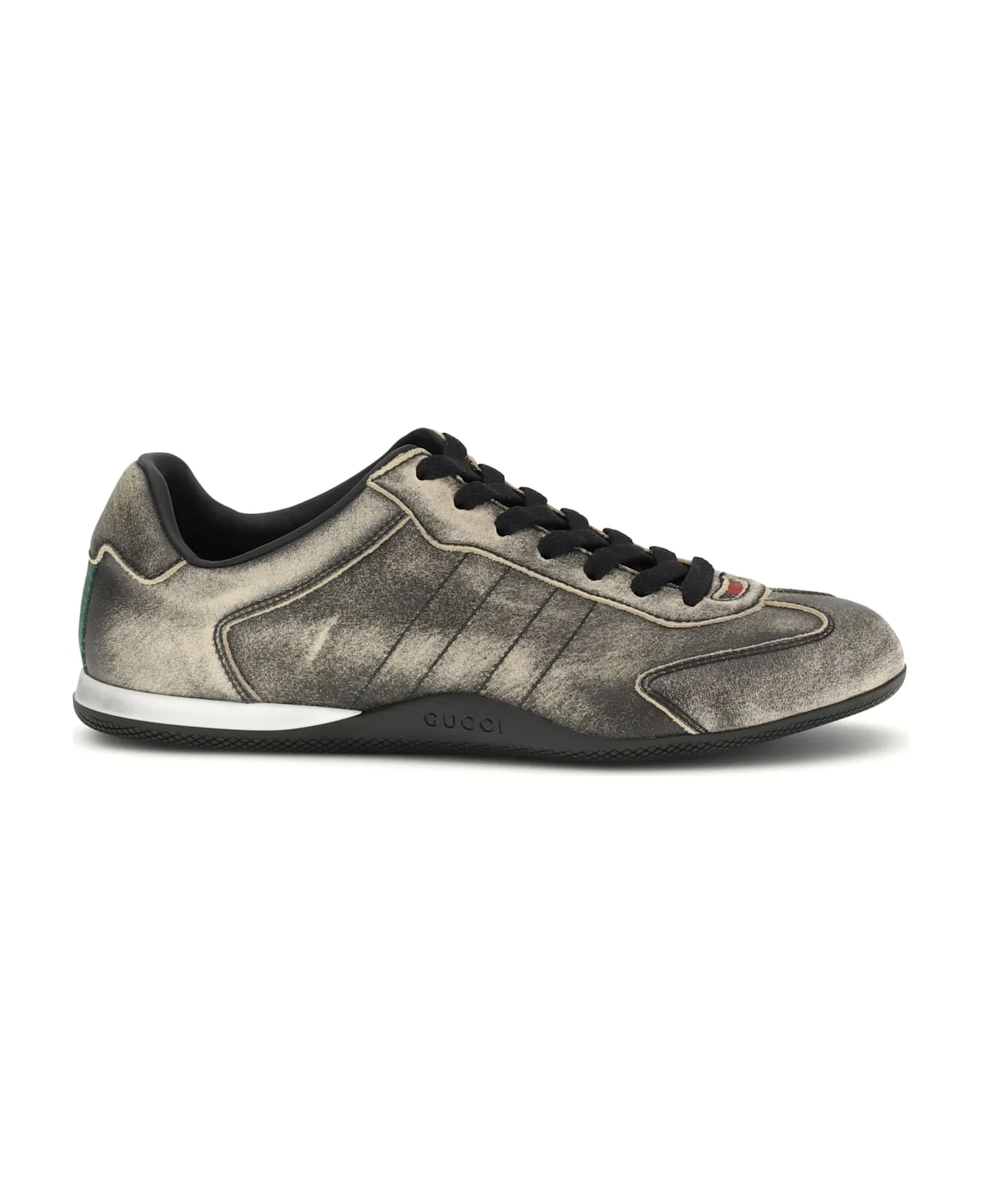 The shift sneakers by gucci, made of black delave-effect leather, feature leather lining for comfort and breathability. the low-top style is enhanced by the red and green web tab and back detail, while the two-tone rubber sole with gucci logo and lace-up closure complete the design with style and functionality. Composition: 100% % Calf Leather Bos Taurus, 100% % Rubber Made in: Italy Model number: 857016AAF0E1086