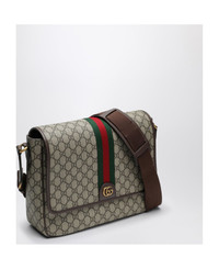 Shoulder Bag With Web Detail In Beige And Ebony Gg Fabric