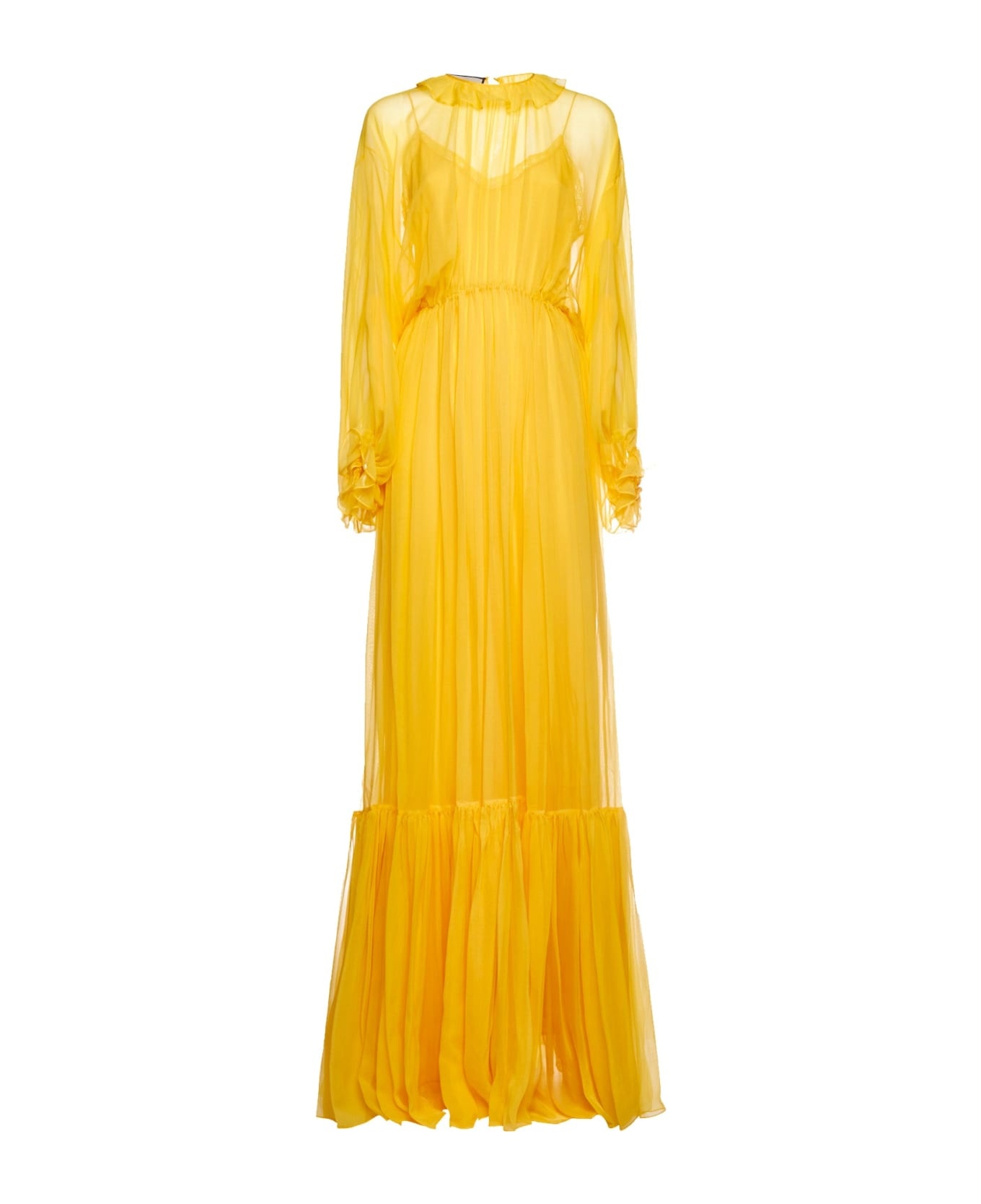 76% Acetate 24% Silk - Long sleeves - Ruffles detail - Specialist wash Made in: Italy Color: Yellow Model number: 695157ZHS577803