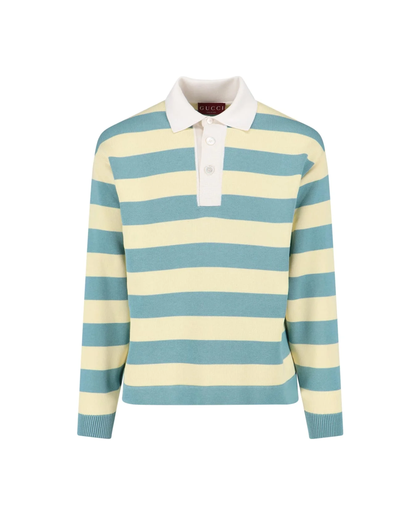 Gucci striped polo shirt in multicolor cotton with contrasting classic collar, button closure, long sleeves, ribbed trim, and straight hem. Composition: 100% Cotton Made in: Italy Color: Multicolor Size and fit: - vestibilita regolare Model number: 851696XKFBA4113
