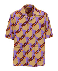 Oversized Camp-Collar Printed Cotton-Poplin Shirt Purple