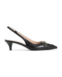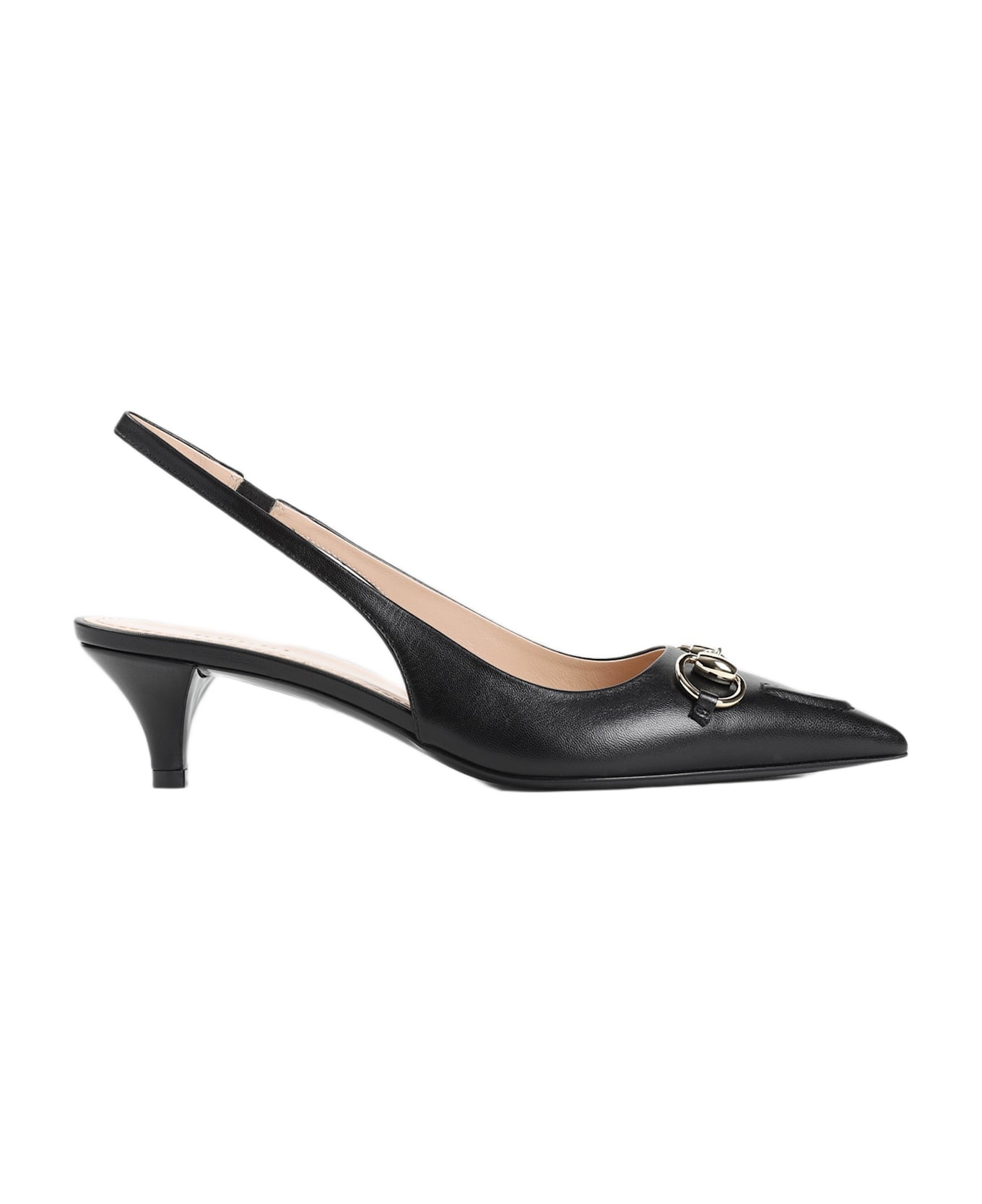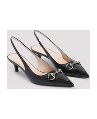 Gucci Wering 45 Black Leather Slingback. Vamp crafted from black leather, pointed toe, silver-tone metal Horsebit on the top, elastic strap on the back, flat covered heel, branded leather insole and outsole. Made in: Italy Color: Nero Nero Size and fit: - Heel Hight: 4,5cm Model number: 782407DMBT01000