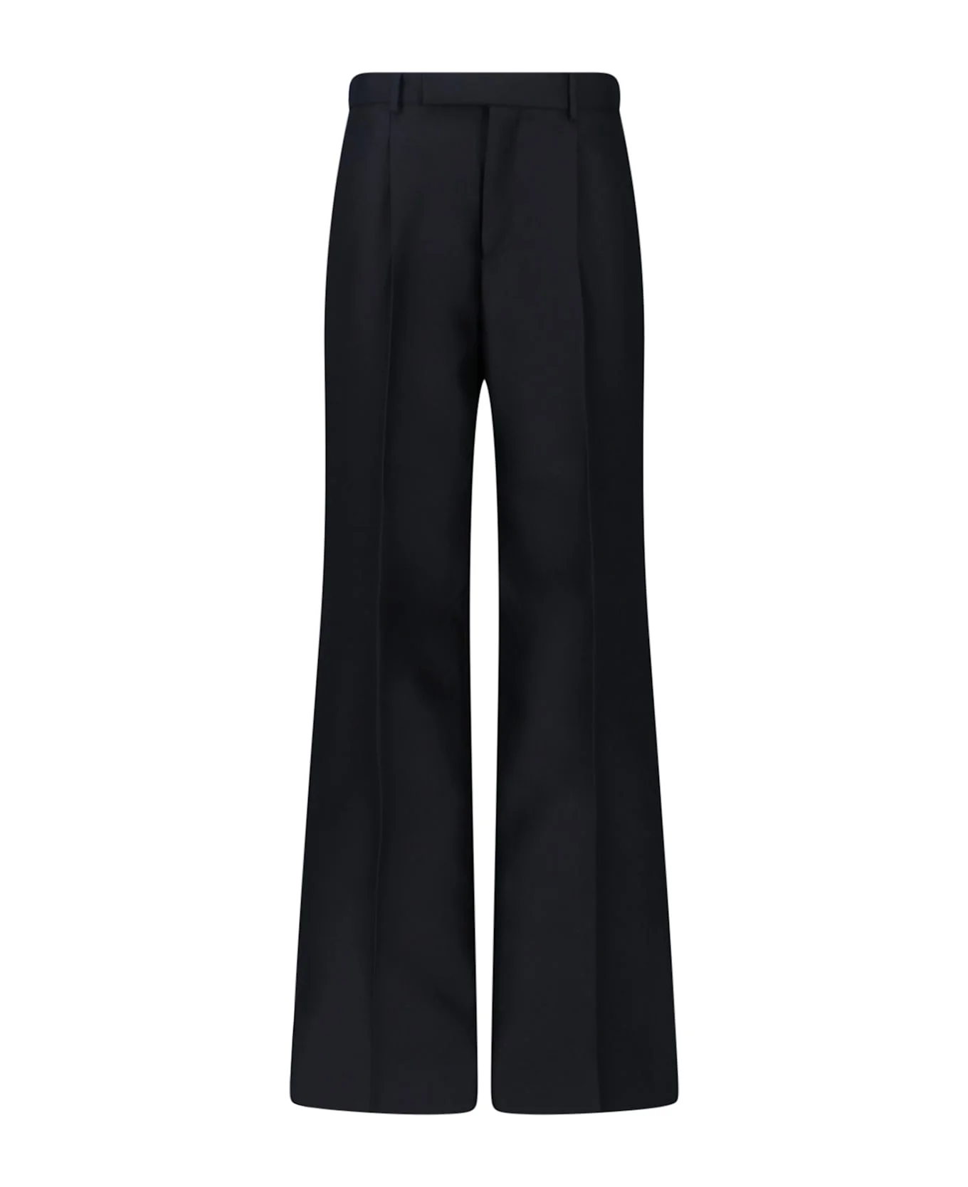 Gucci black wool and silk pants with high waist, belt loops, hook and zip closure, front pin tucks, two side pockets, tone-on-tone embossed logo on the back, two flat back pockets, straight leg. Composition: 84% Wool, 15% Silk Made in: Italy Color: Black Size and fit: - Vestibilita regolare Model number: 827840Z7AE71000