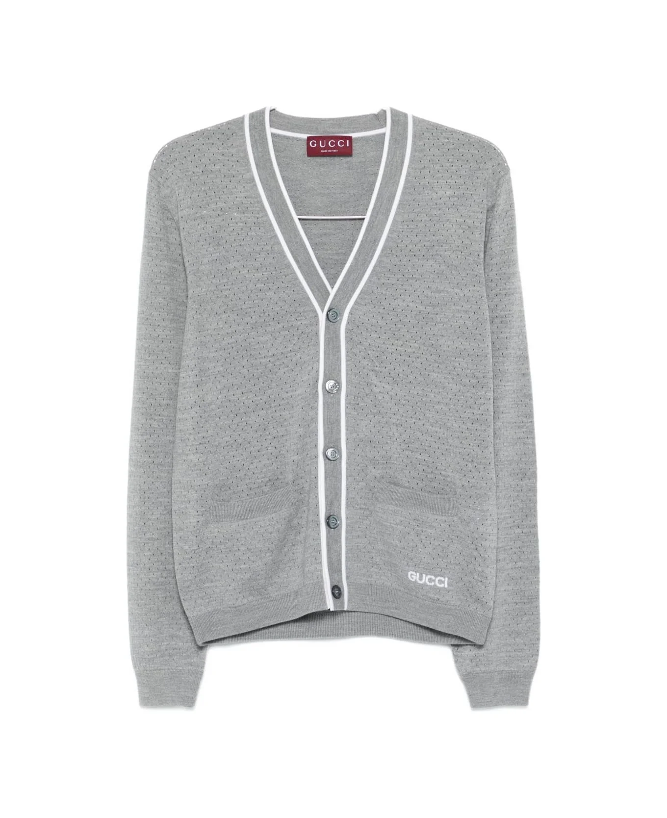 grey wool button fastening v-neck white trim embroidered logo Composition: Wool, 100% Made in: Italy Color: Grey Model number: 834072XKESP1130