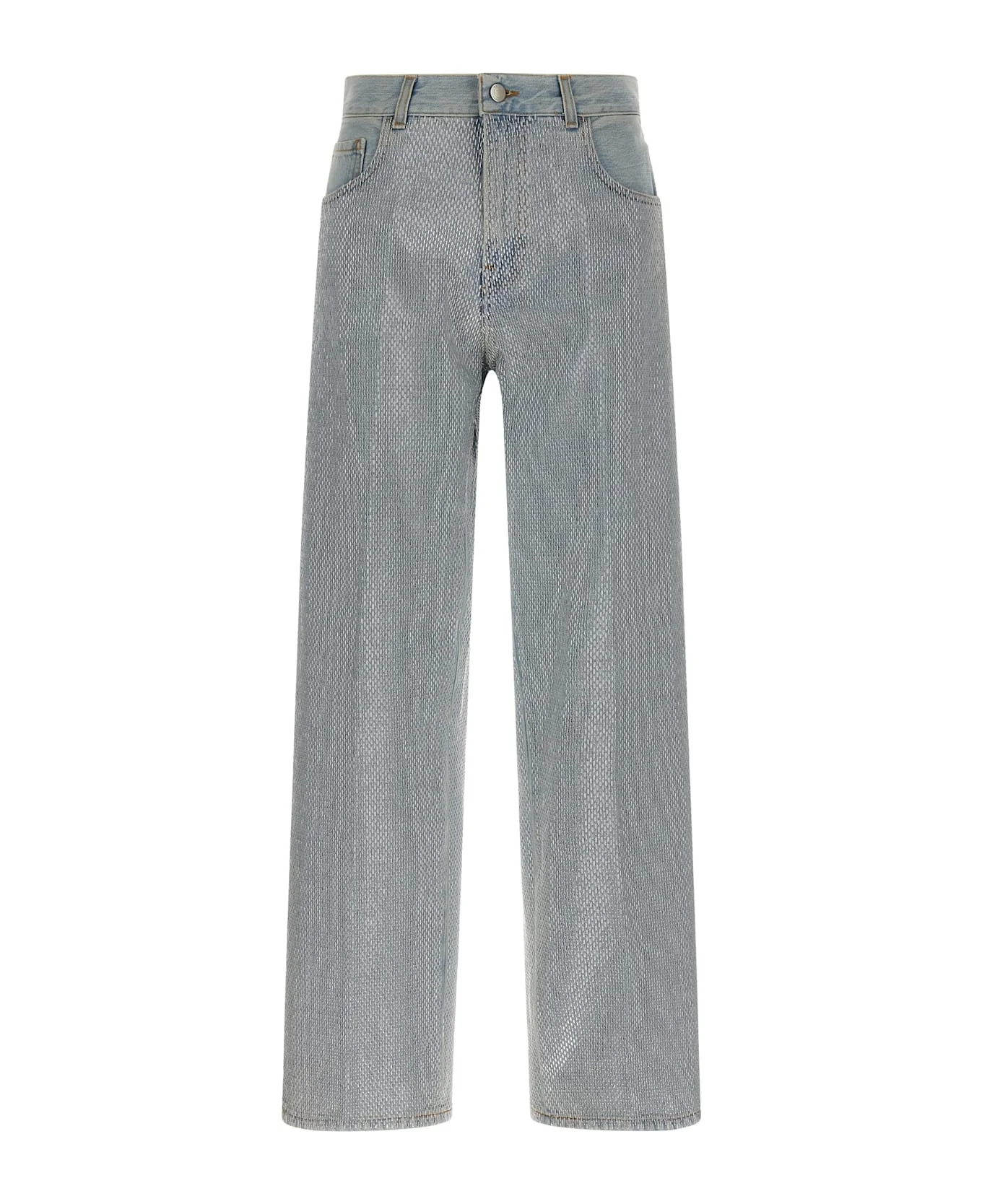'Bonnie' cotton denim jeans with all-over baguette studs, contrast stitching, front zip and button closure, five pockets, wide straight leg, back suede logo tag. Composition: 100% cotton Made in: Italy Size and fit: - true to size fit Model number: HEW03330DF180