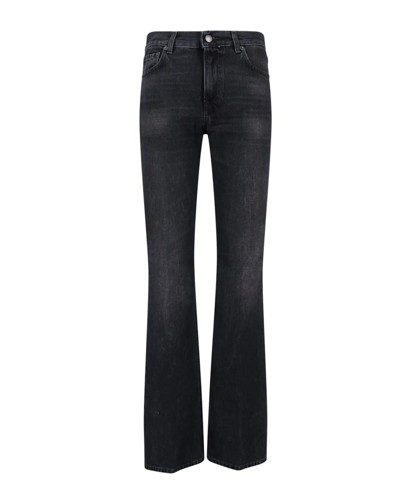 Haikure Flora bootcut jeans in black cotton denim with high waist, button and zip closure, five pockets, back logo patch, slim leg. Composition: 100% Cotton Made in: Italy Color: Black Size and fit: - vestibilita slim Model number: HEW03338DF174L902