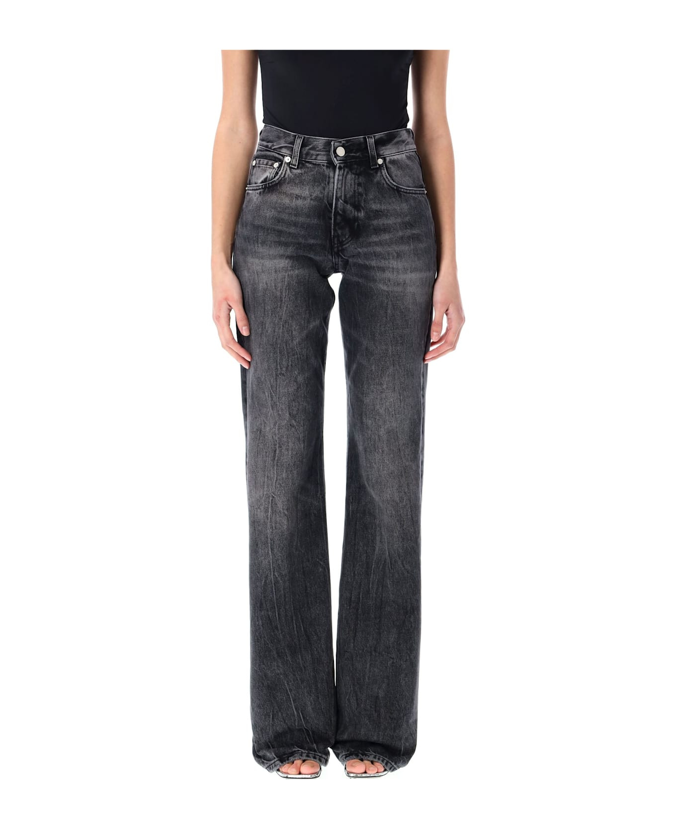 Cotton Flora Jeans By Haikure. Featuring: High Waist Belt Loops Button And Zip Fly Five Pockets Straight Leg Model Is 1,70 M And Wears Size 26 Composition: 100% cotton Made in: Italy Color: SPIDER BLACK Model number: HEW03338DF119L0790
