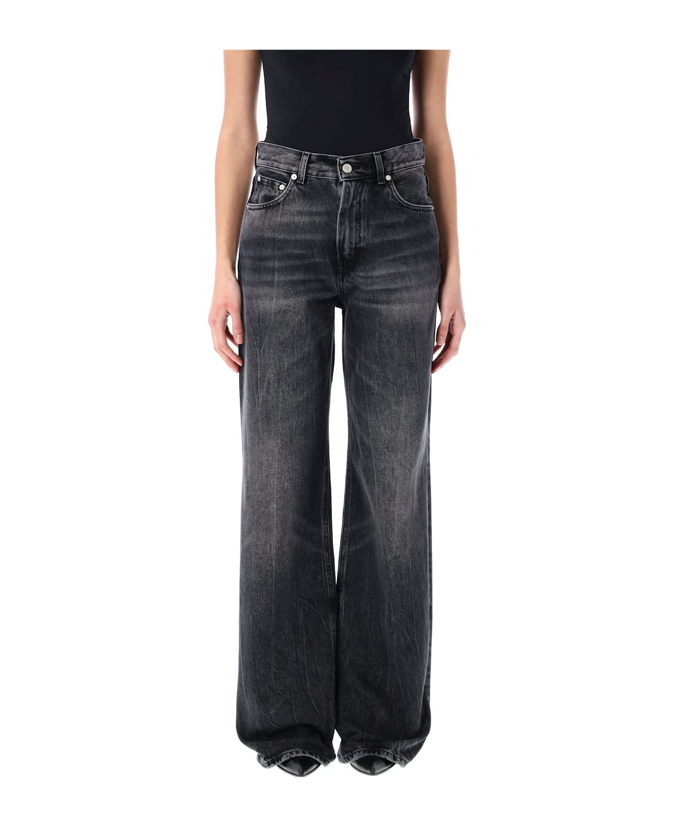 Cotton Korea Jeans By Haikure. Featuring: Button And Zip Fly Belt Lopps Five Pockets Wide Leg Model Is 1,70 M And Wears Size 26 Composition: 100% cotton Made in: Italy Color: Spider Black Model number: HEW03185DF119L790L790