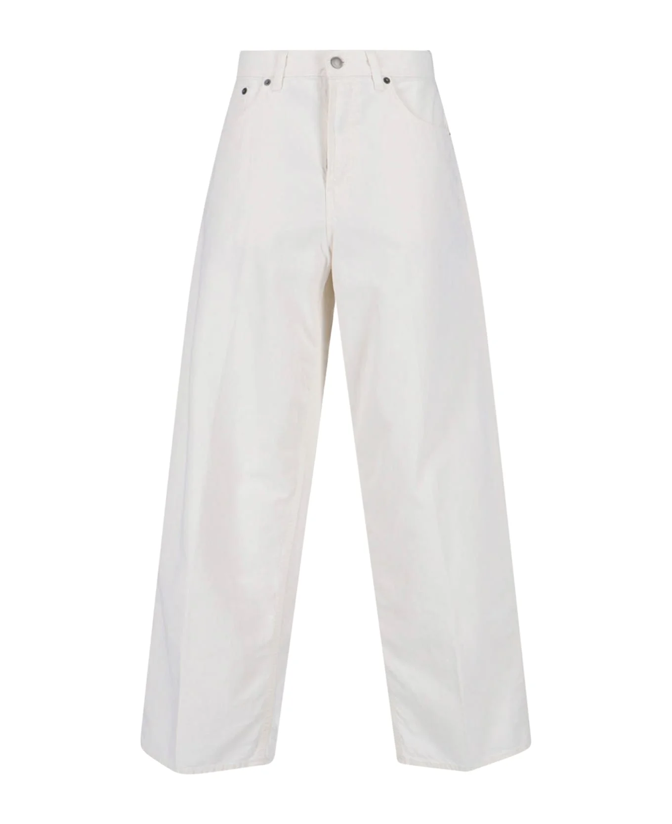Wide jeans in cotton and linen Haikure in white denim, mid waist, button closure, five pocket design, back patch, wide leg. Composition: 85% Cotton, 15% Linen Made in: Italy Color: White Size and fit: - vestibilita morbida Model number: HEW03296GF146XTT0341