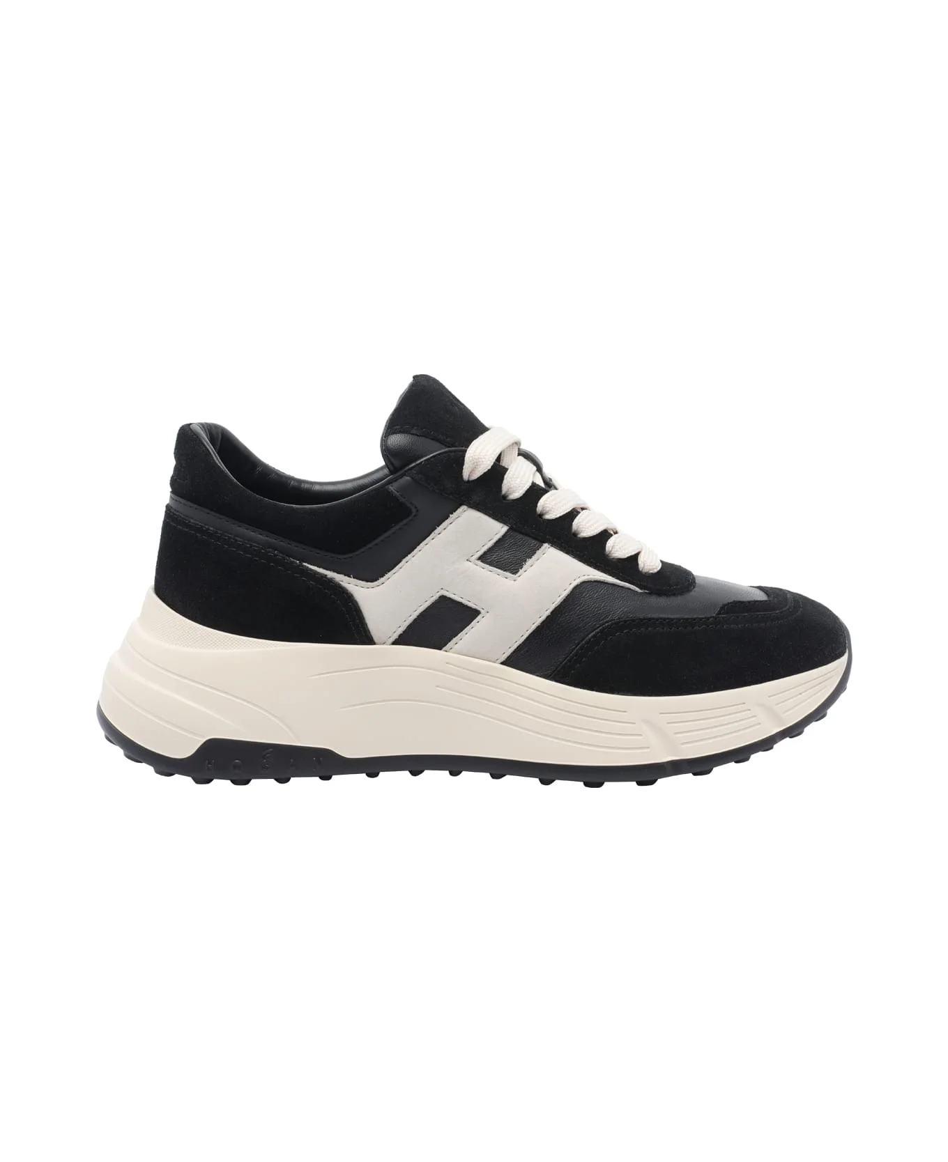 Hogan black Hi-Fi sneakers, round toe, lateral H logo, leather upper Composition: 100% Suede And Calf Leather/rubber Sole Made in: Italy Color: black Size and fit: - Platform 7 cm Model number: HXW6690FR30UHG10231023
