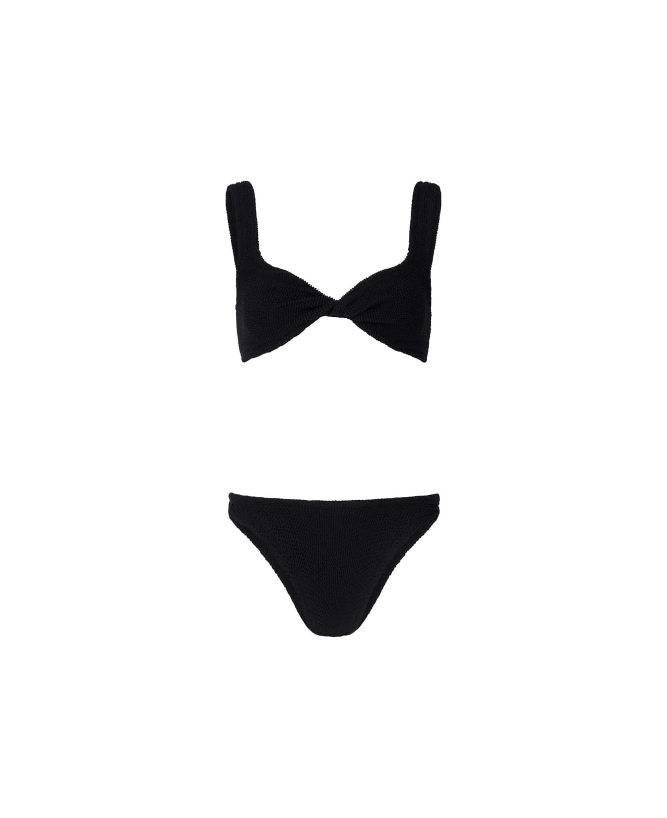 black stretch-design crinkled finish Bikini Top: twist detailing V-neck sleeveless straight hem Bikini Bottoms: mid-rise elasticated waistband classic bottoms Be mindful to try on swimwear over your own garments. Made in: United Kingdom Color: BLACK Size and fit: - bust: 46.0 centimetres, hips: 50.0 centimetres, length: 21.0 centimetres Model number: BJUNOCRCRINKLE