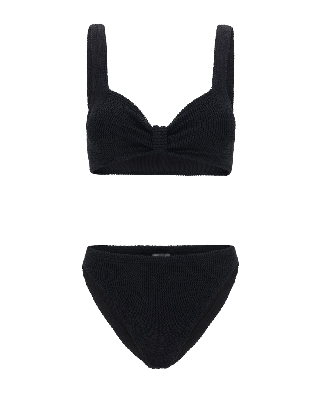 Bonnie swimsuit by hunza g, bandeau top piece with wide straps, smock stitch creates sweetheart neckline on front, high-waisted bottom, stretchy monochrome pattern. Composition: 100% % Polyamide Made in: Morocco Model number: BBONNIECRBLACK