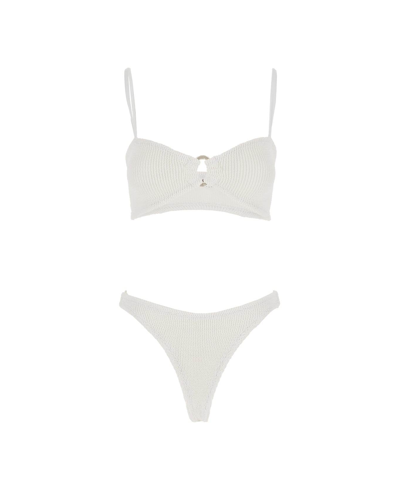 Bikini White Fixed spaghetti straps Cut-out with ring High cut bottoms Tech fabric stretch Regular fit Composition: 97% Polyamide 3% Elastane Made in: Morocco Color: White Model number: BMISTYPRLWHITE