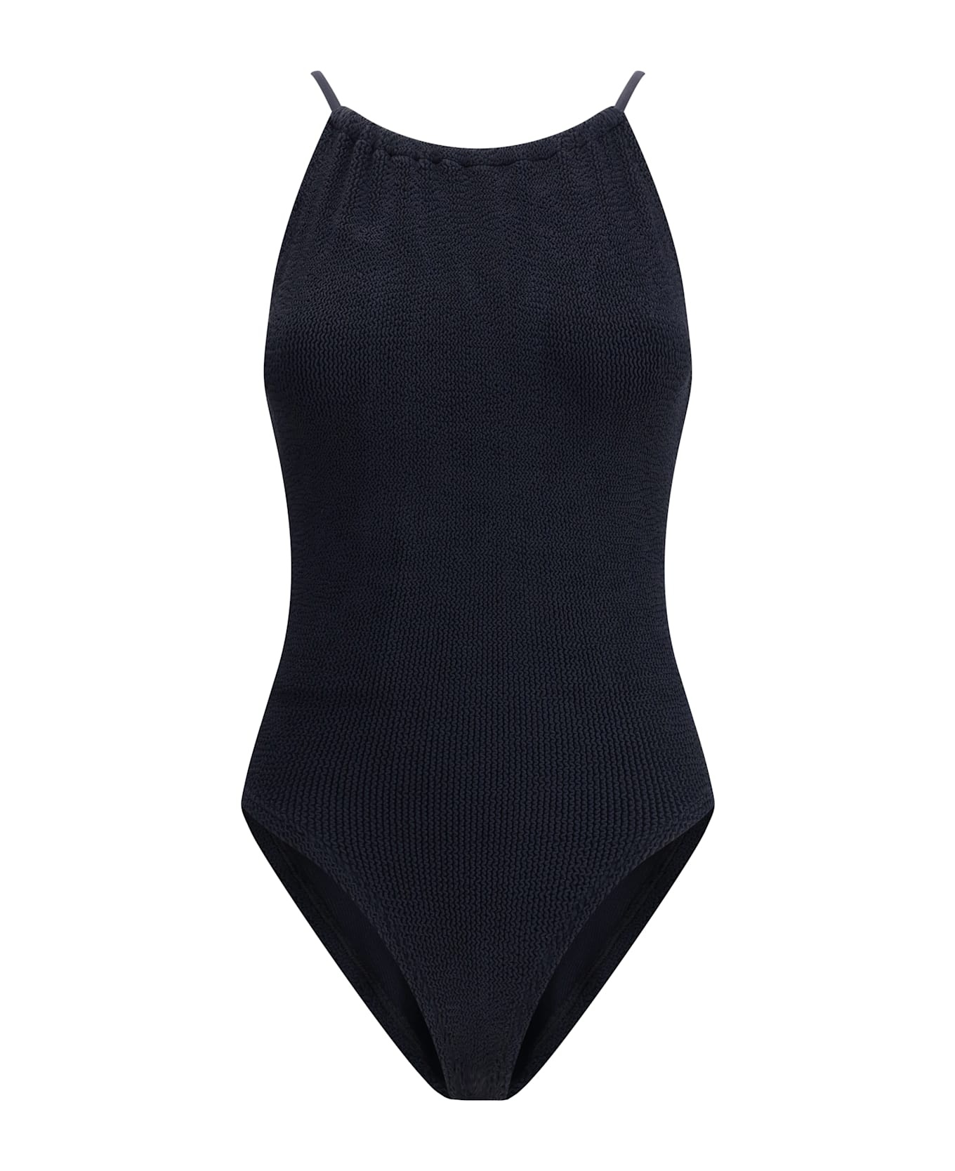 The portia swimsuit by hunza g is ideal for those seeking elegance and comfort in a sporty design. this one-piece swimsuit features a high-neck silhouette with delicate tone-on-tone straps and crisscross back detailing, giving it a sophisticated and dynamic touch. the exclusive original crinkle fabrication allows the fabric to stretch to flex, sculpt and support every curve, fitting all body types perfectly with a unique fit. Composition: 100% % Polyamide Made in: Morocco Color: Black Model number: SPORTIACRBLACK