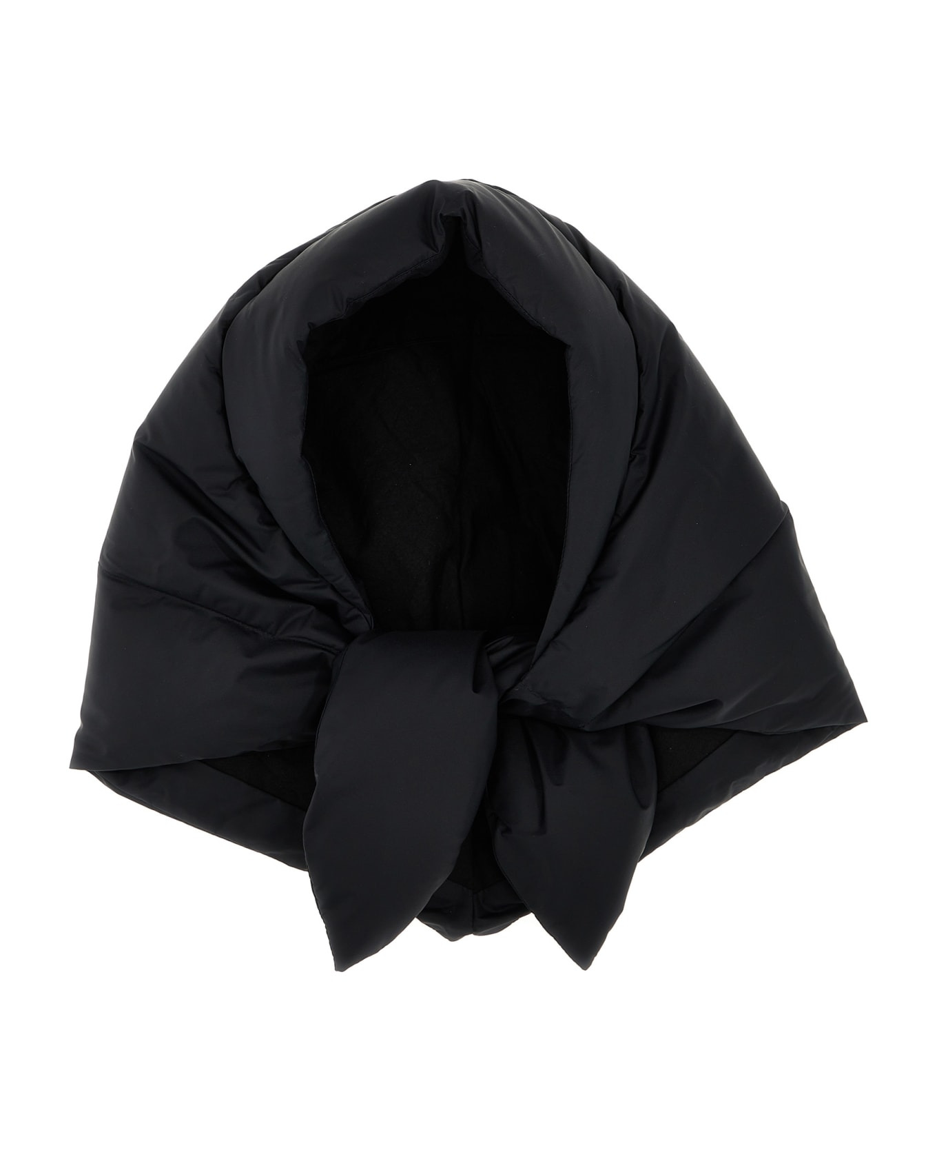 'Hustka' hood in water-repellent nylon with goose down padding. It can be worn as a scarf or as a normal scarf. Composition: 100% nylon Made in: Ukraine Color: Black Size and fit: - One size Model number: HUSTKAHOODENNIONYLONENNIOBLACK