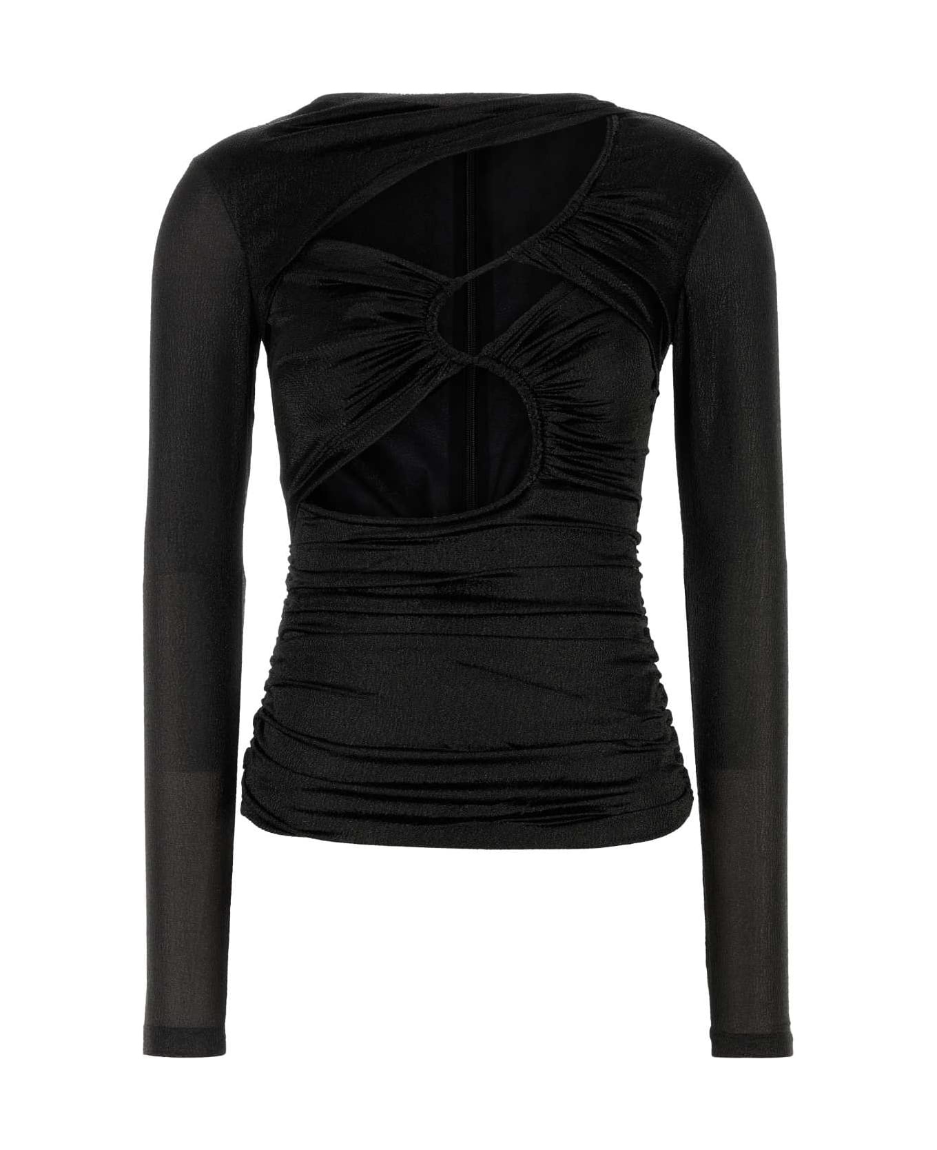 Black Stretch Silk Blend Rose Top