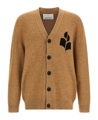 'Curtis' wool blend cardigan with V-neck, front button closure, contrast front logo intarsia, long cuffed sleeves. Composition: 41% co, 22% vi, 18% wo, 9% pa, 9% pl, 1% ea Made in: China Color: Beige Size and fit: - True to size fit Model number: CA0083HAA1L03H50CM
