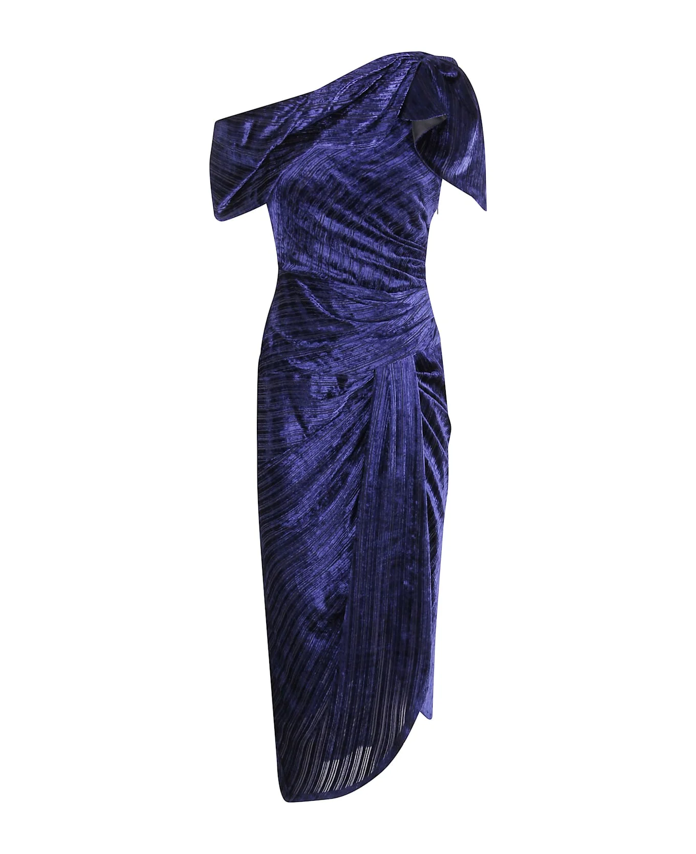 Cyane dress - Isabel Marant - Blue color - Midi length - Zebra velvet devore fabric - Open shoulder with bows - Sleeveless - Draped waist - Fluid cut - Skirt with asymmetrical slit Made in: Romania Color: Db Model number: RO0909FAC4J05I|097