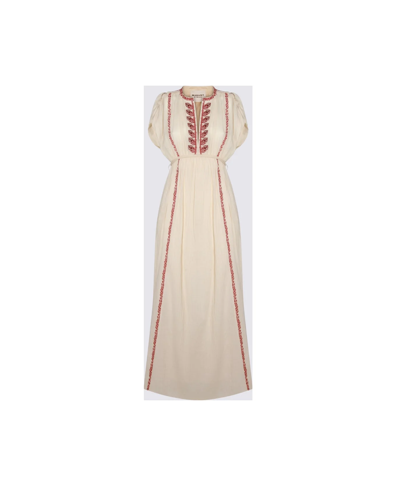 Beige and red viscose dress from Marant Etoile featuring round collar, short sleeves, embroideries and long lenght. Composition: _, 100% Viscose Made in: India Color: BEIGE/RED Model number: 26PRO1050FAD1J16EBERD
