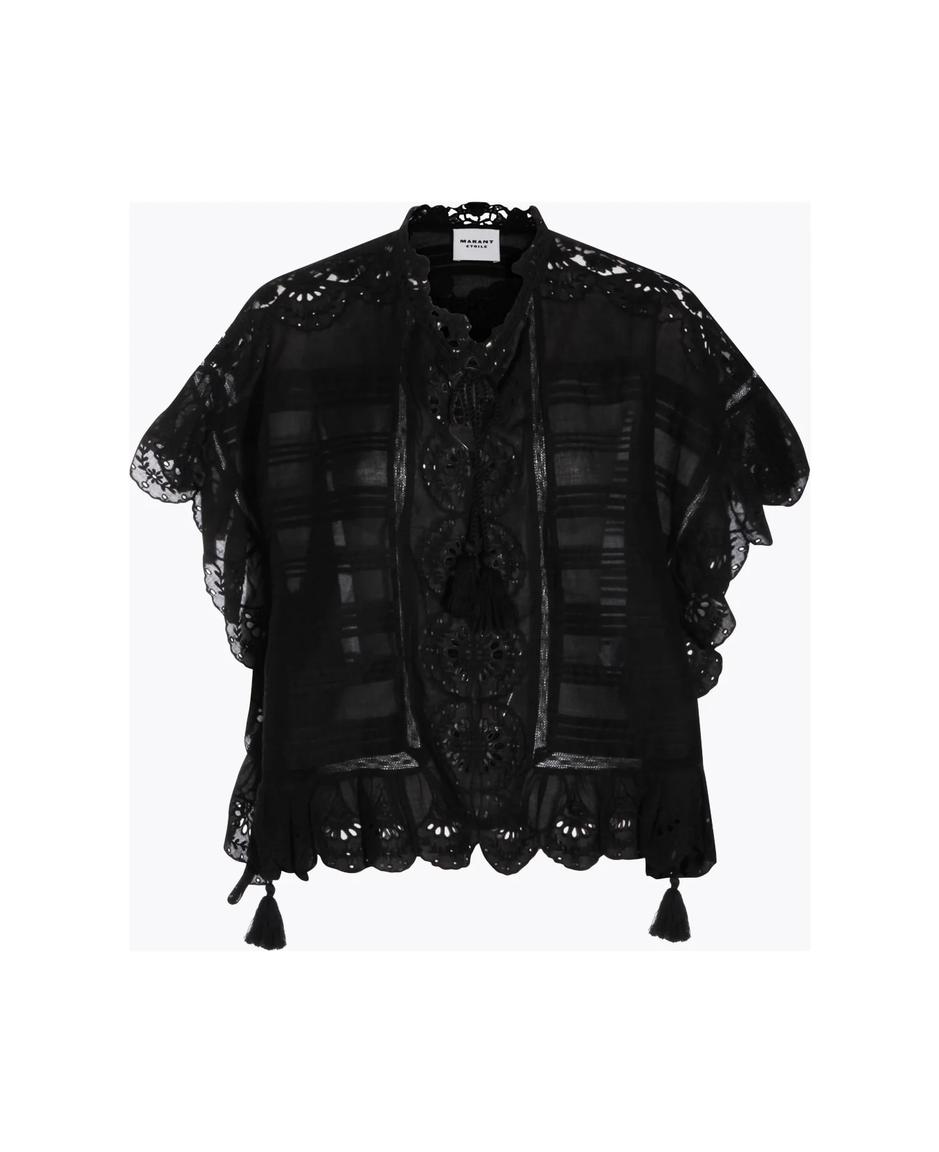 Black cotton lace top from Isabel Marant featuring short sleeves, round neck, all over lace texture and relaxed fit. Composition: _, 100% Co Made in: China Color: Black Model number: 26PHT0768FAD1J05E01BK