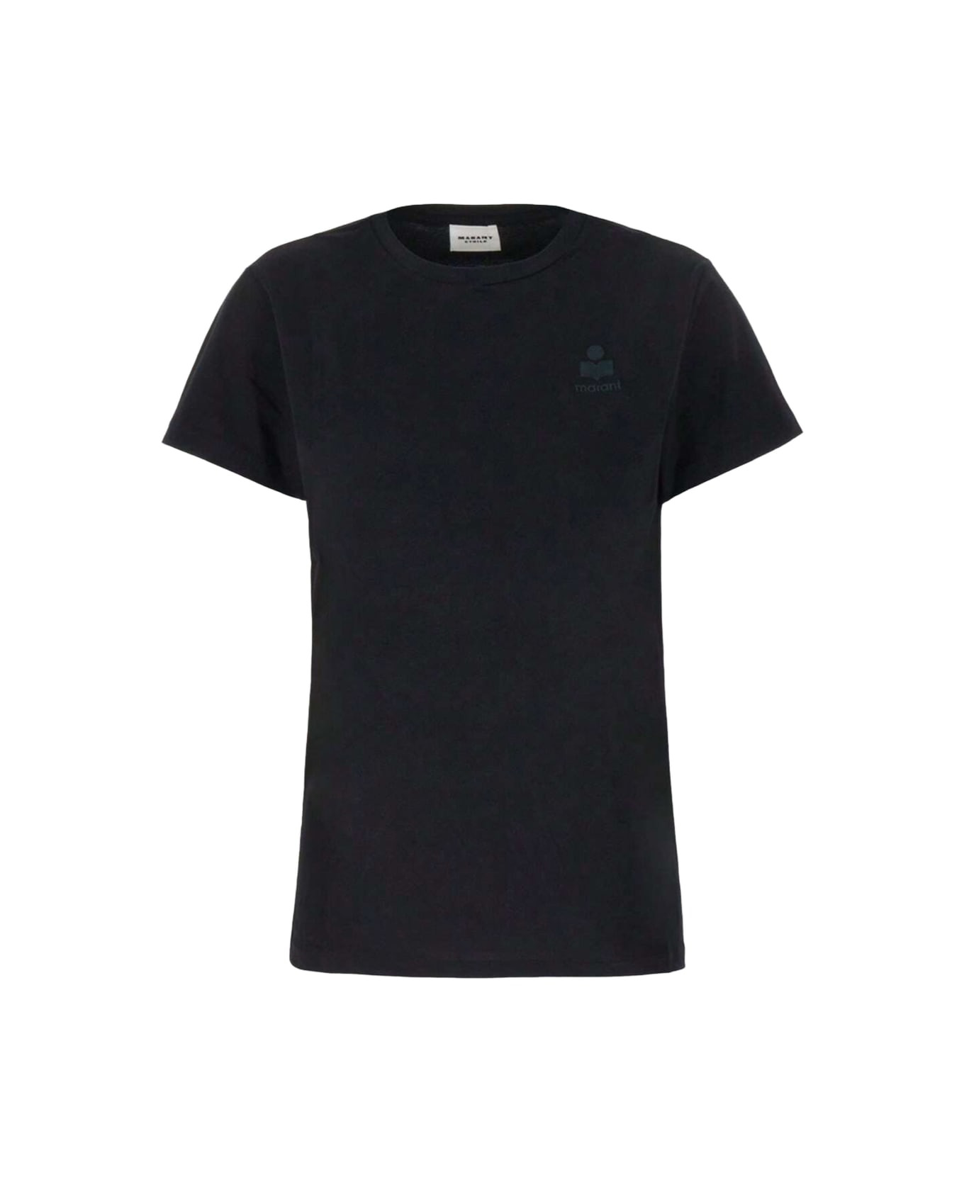 Black cotton t-shirt from Marant Etoile featuring round toe, short sleeves, logo detail and regular vestibility. Composition: _, 100% Co Made in: Portugal Color: Black Model number: 23PTS0070FAA1N98E01BK