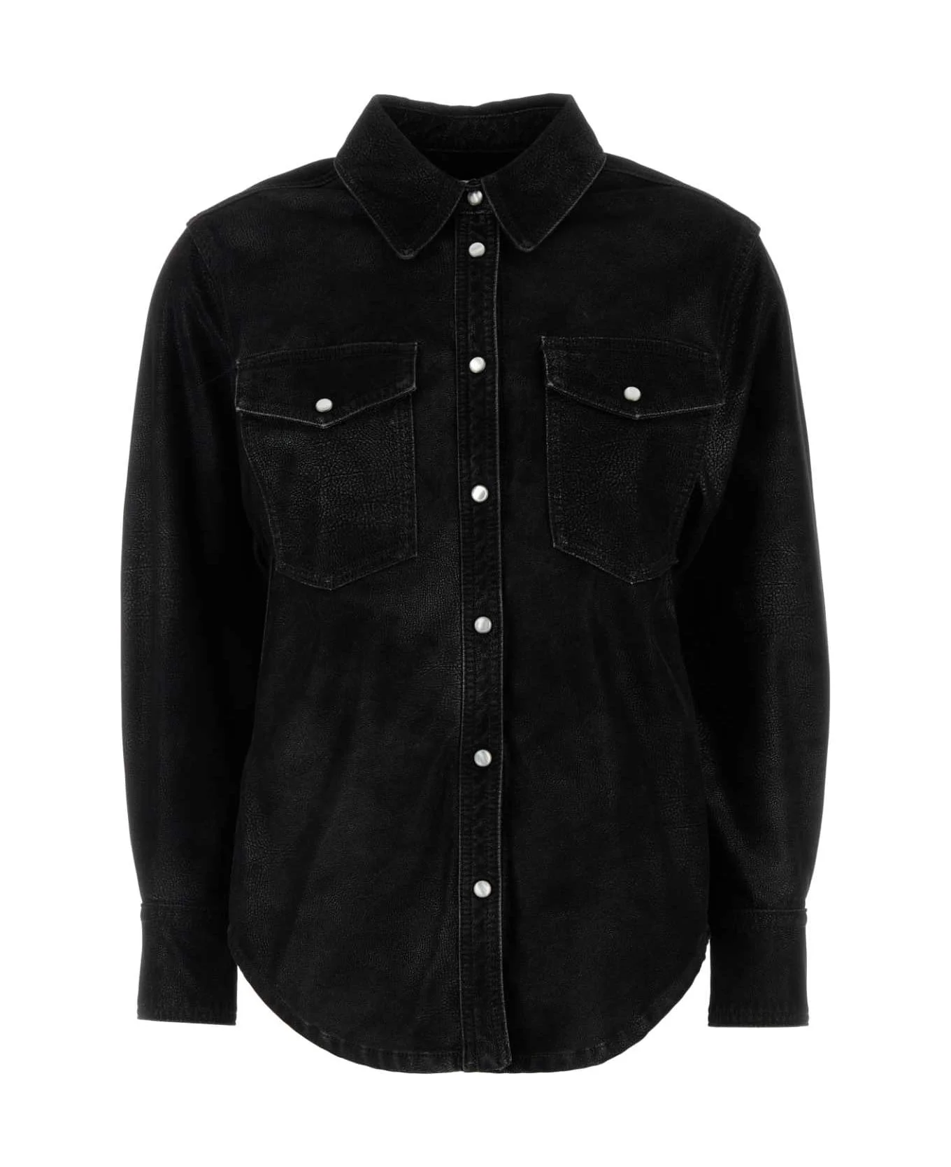 Black Synthetic Leather Karima Shirt from Marant Etoile Made in: Tunisia Color: Black Model number: CH0240FAC3B01E