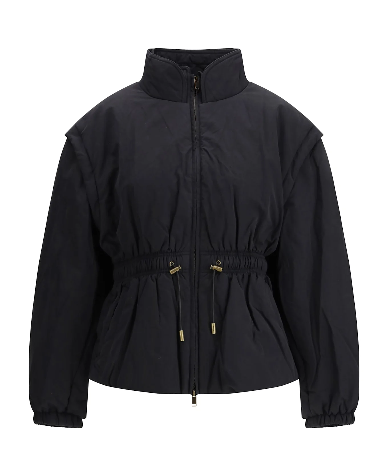 The cotton bomber jacket by marant etoile channels a sporty aesthetic with a modern, relaxed attitude. a high neck adds both style and protection, while dropped shoulders and long sleeves create an effortless silhouette. the front zip closure with double slider offers versatility and ease of wear, and the drawstring waist allows for an adjustable fit. finished with a straight hem, this bomber is perfect for casual, urban looks. Composition: 70% % Polyamide, 30% % Cotton, 50% % Polyester, 50% % Cotton Made in: China Model number: MA0007FBC3G01E02FK