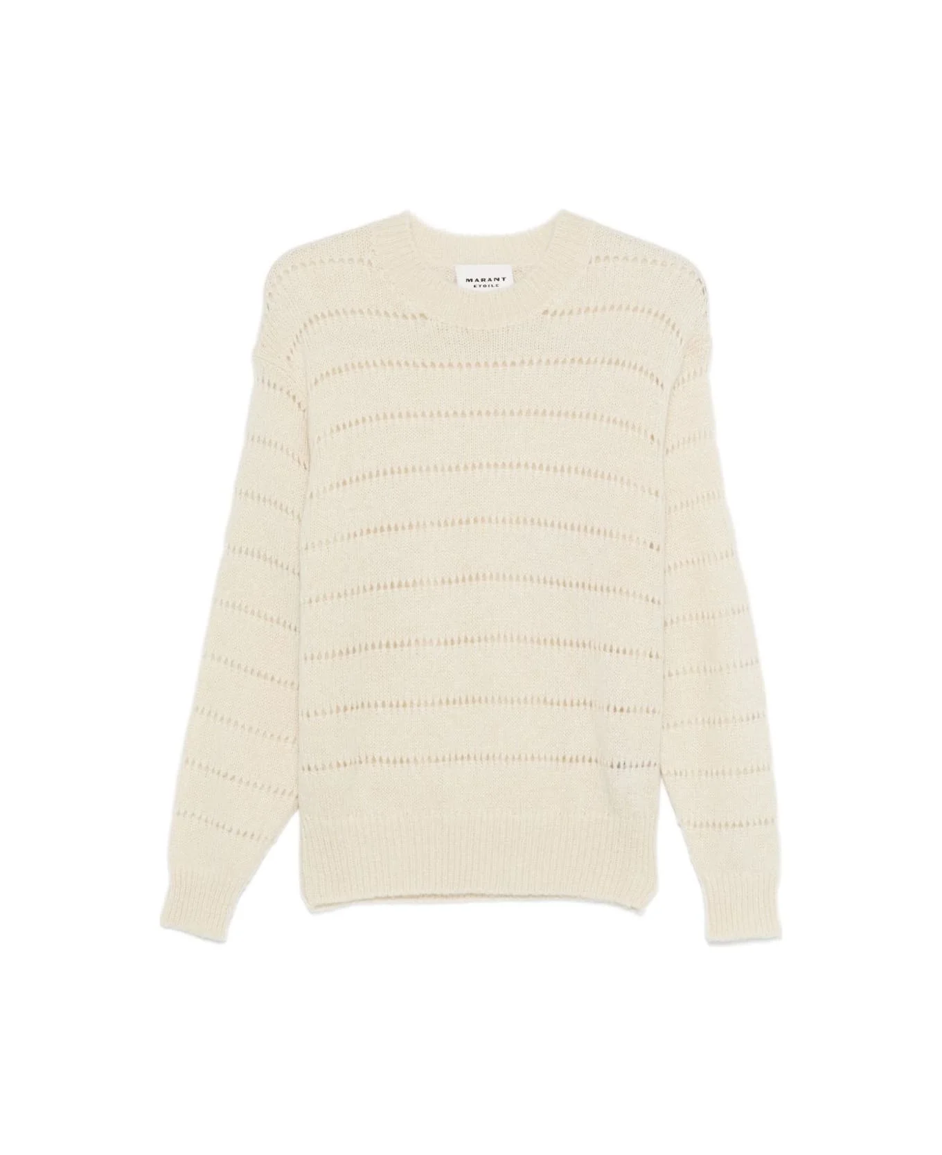 Marant Etoile Ecru horizontally striped open-knit sweater with a round neck and long sleeves Composition: Matiere Principale:, 36% Acrylique, 28% Polyamide, 18% Mohair, 18% Alpaga Made in: Italy Color: Beige Model number: PU0700FAC3L05E23EC