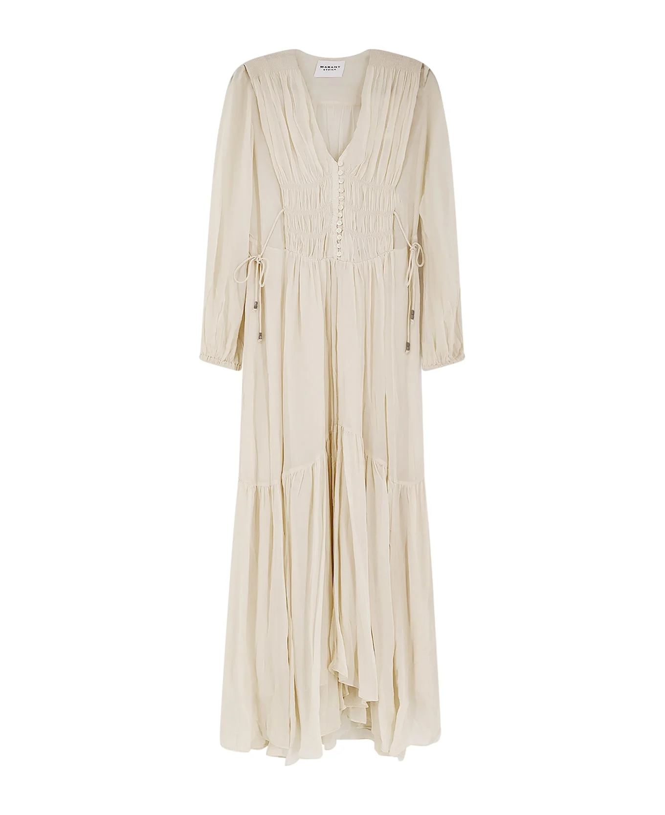 V-neck Closure with covered buttons Long sleeves with elastic cuffs Adjustable drawstring waist Lined 100% Viscose SKU:RO0798FBD1J08E23EC Made in: India Color: Beige Model number: RO0798FBD1J08E23EC