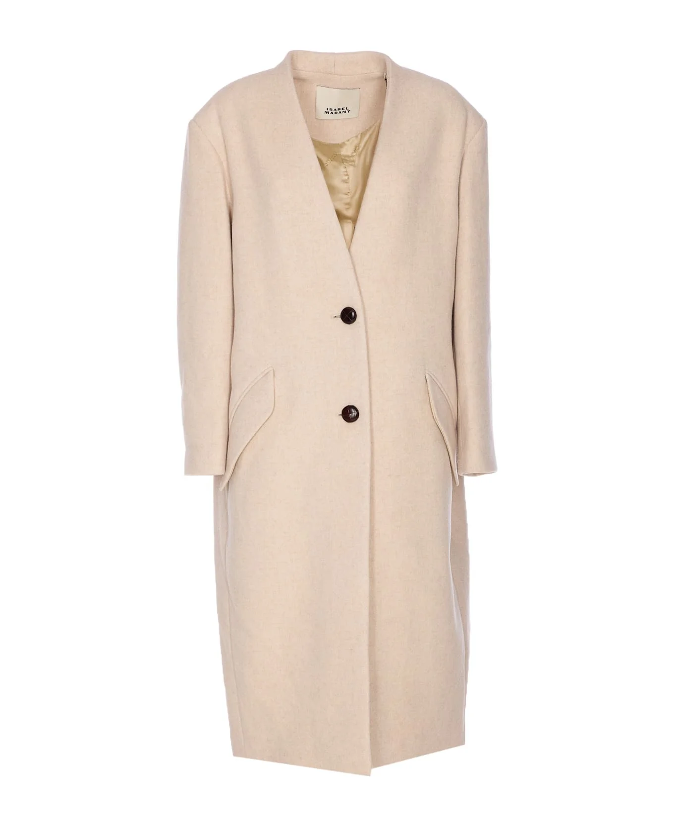 Isabel Marant Etoile ecru Florane coat with frontal buttons closure, V-neck, long sleeves, pockets Composition: 75% Wool, 25% Polyamide Made in: Romania Color: Beige Model number: 25AMA0439FAB1D03I23EC