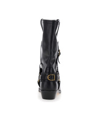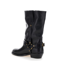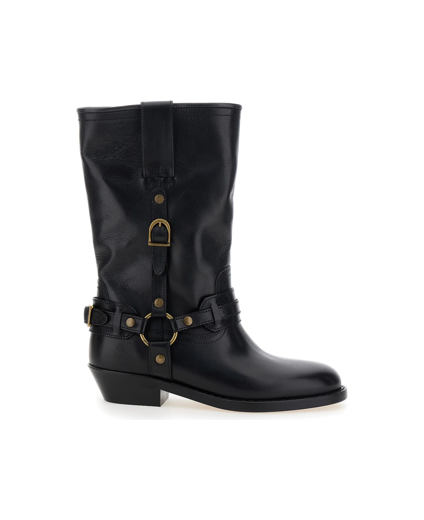 'heiko' Black Ankle Boots With Studs And Ring In Leather Woman