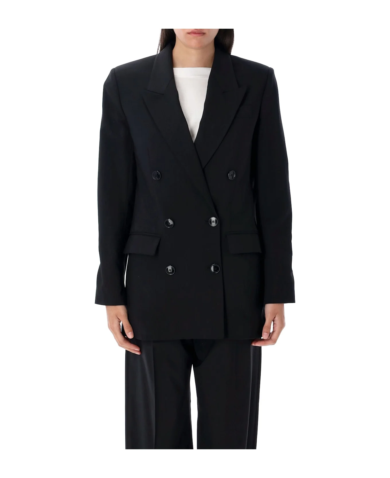 Wool Jewima Blazer By Isabel Marant. Featuring: Peak Lapel Double-breasted Button Closure Four-button Cuffs Chest Pocket Front Flap Pockets Rear Central Vent Model Is 1,70 M And Wears Size 36 Composition: 96% virgin wool, 4% elastane Lining, 80% polyester, 20% viscose Pocket lining, 100% cotton Made in: Bulgaria Color: Bk Black Model number: VE0538FBB1F01I