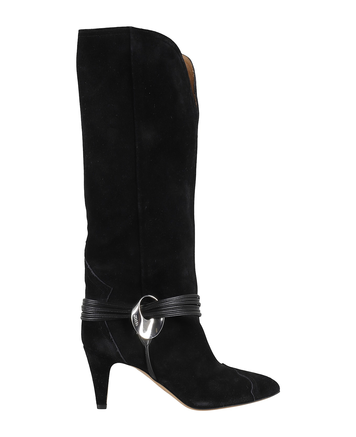 Lestany Gz boot - Isabel Marant - color black - suede upper - pointed design - smooth leather straps - metal jewel with engraved logo - heel height 7. 5 cm Made in: Italy Color: Bk Model number: BT0010FBB4A18S|097