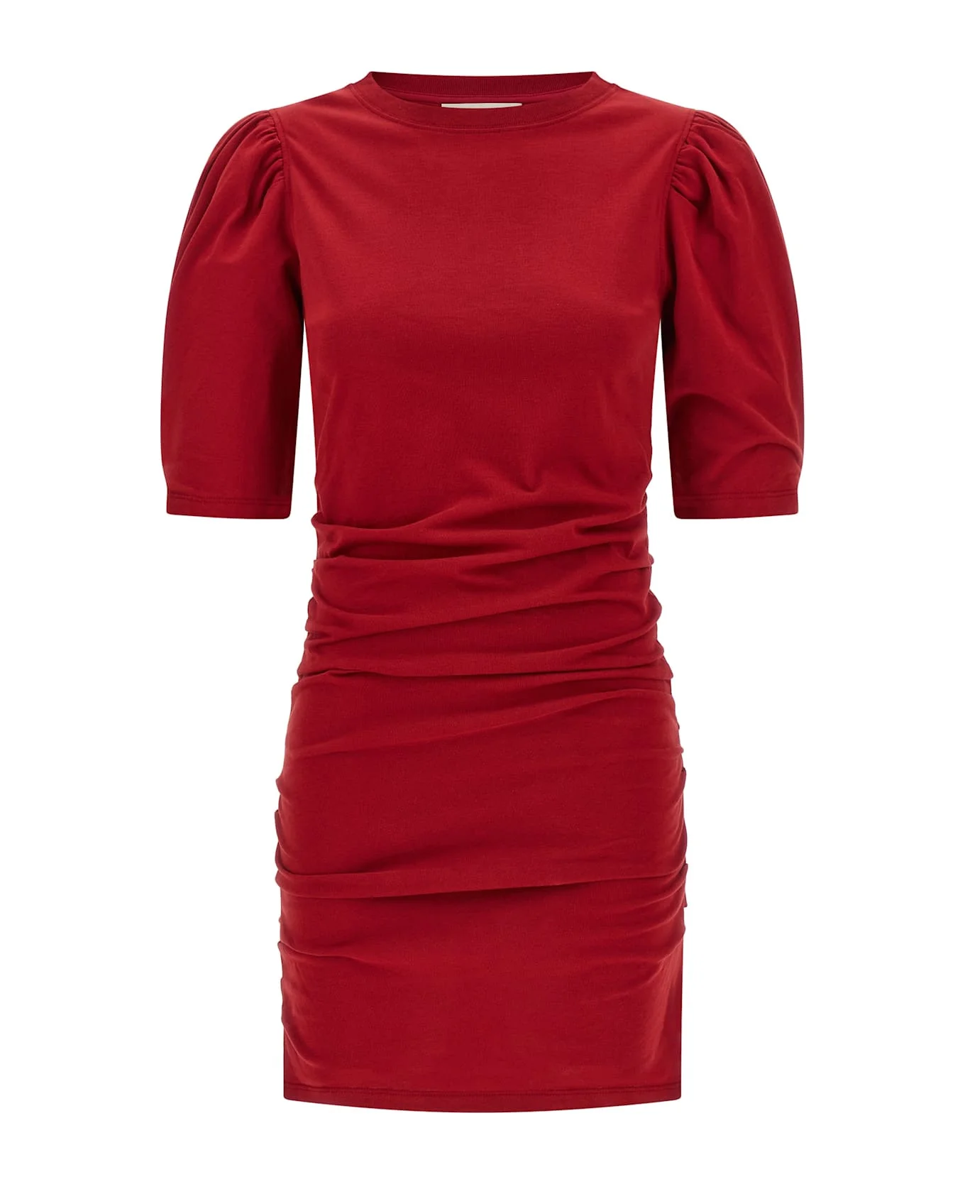 'Mylda' cotton jersey mini dress with side draping, round neckline, 3/4 sleeves with gusset and crinkled shoulder, tone-on-tone logo embroidery at the back. SUSTAINABLE: This product is made with organic cotton. Composition: 100% cotton Made in: Portugal Color: Red Size and fit: - true to size fit Model number: RO1038FAA1N41I70CH