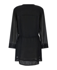 'Oaria' embroidered silk mini dress, crew neck, front cut-out with hook closure, drawstring at the waist, long cuffed sleeves, underskirt. Composition: 100% silk Made in: India Color: Black Size and fit: - true to size fit French size Model number: RO0704FAC1J07I01BK