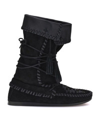 Isabel marant's winki boots combine refined style with handcrafted details. made of suede calfskin with leather trim, they feature a strap fastening and an ankle length for a modern look. layered details, whipstitch trim, decorative stitching, and distinctive tassel detail enrich the design, while the almond toe lends a touch of timeless elegance. Composition: 100% % Calf Leather Bos Taurus Made in: France Model number: BO0210FAC2A05S01BK