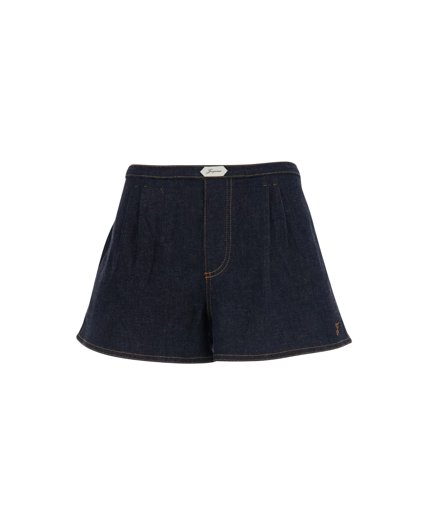 Blue Shorts With Pleats At The Front In Demim Woman