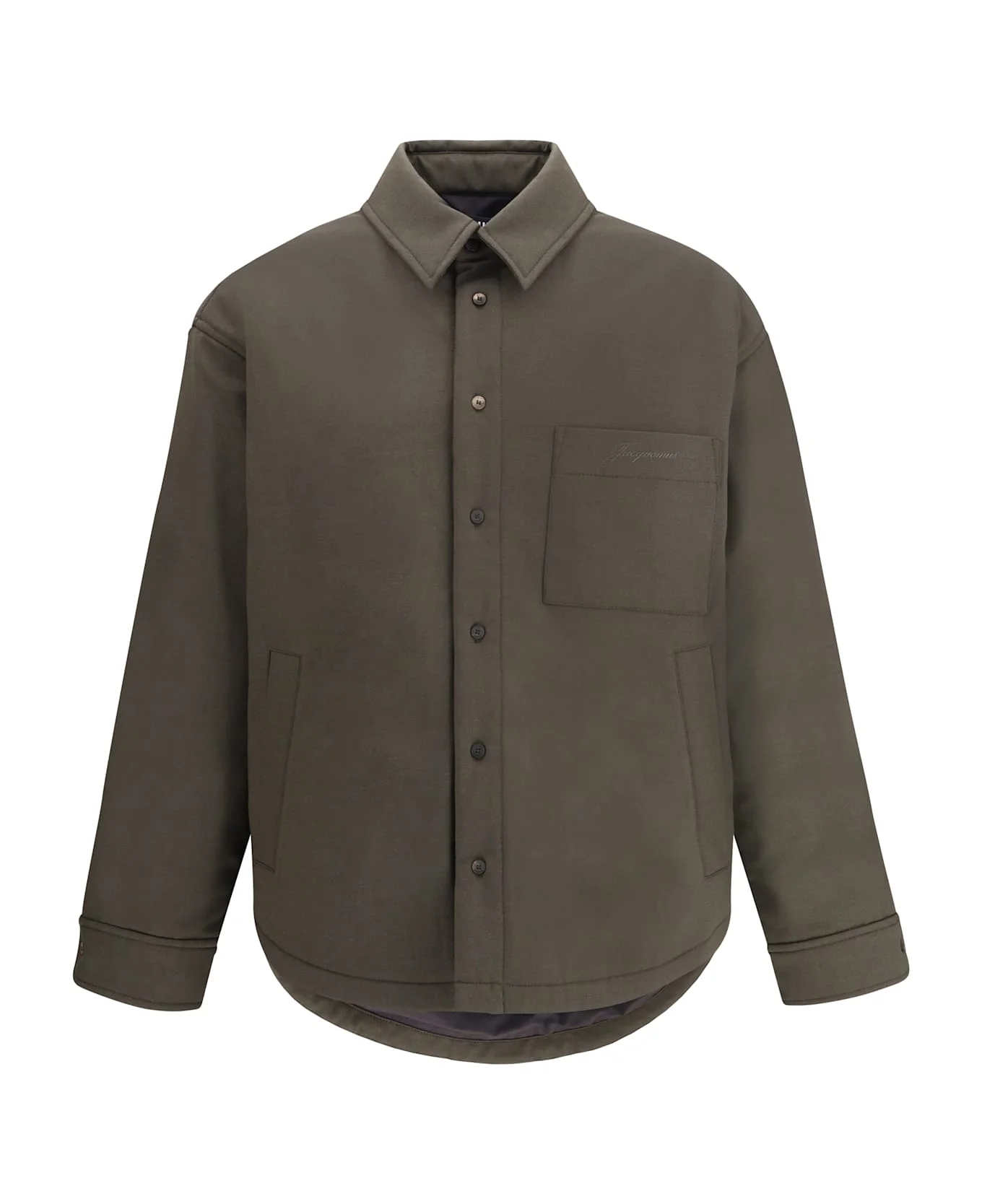 The boulanger shirt by jacquemus blends the elegance of a tailored shirt with the functionality of a padded jacket. crafted from stretch virgin wool, it features a boxy fit with rounded shoulders, creating a bold, modern silhouette. a pointed collar and squared cuffs emphasize its structured design, while mother-of-pearl buttons provide a refined finishing touch. an embroidered logo on the chest pocket, a back yoke with signature j loop, and the fully padded, lined construction make this piece a perfect balance of warmth, comfort, and contemporary sophistication. Composition: 95% % Fleece Wool, 5% % Elastane, 55% % Cotton, 45% % Polyester Made in: Tunisia Model number: OUM00116AW00670580