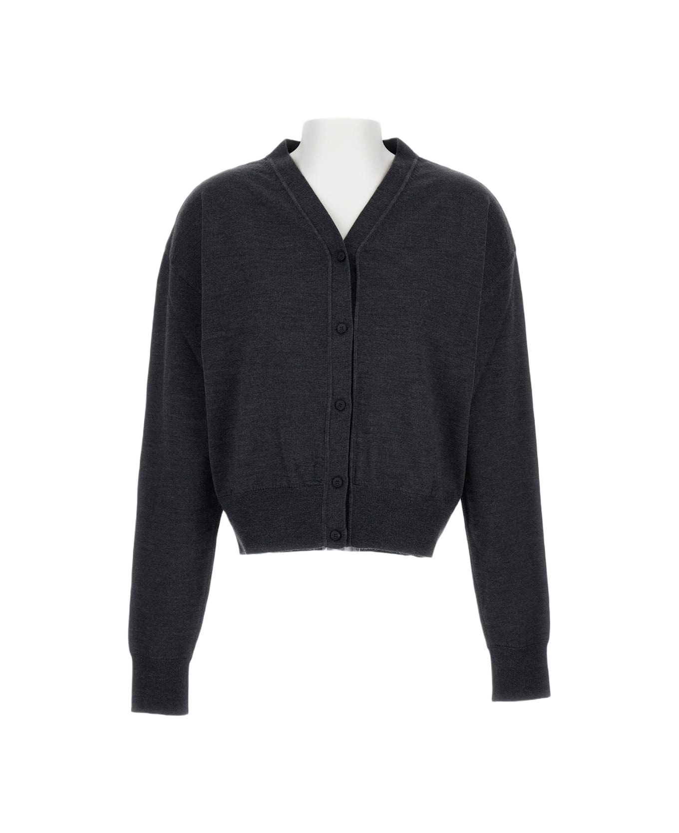 V-neck cardigan with front buttoning, wool, grey Composition: 96% We. merino Wool, 4% Pa. polyamide/nylon Made in: Portugal Color: Grey Model number: CDW00816AK00299970