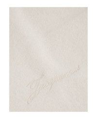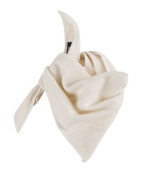Cream-colored cashmere bandana by JACQUEMUS, featuring a triangular shape, embroidered logo on the front and overlock edges. Composition: 100% Cashmere Made in: Italy Color: Cream Model number: 25HACU00783AK00292110