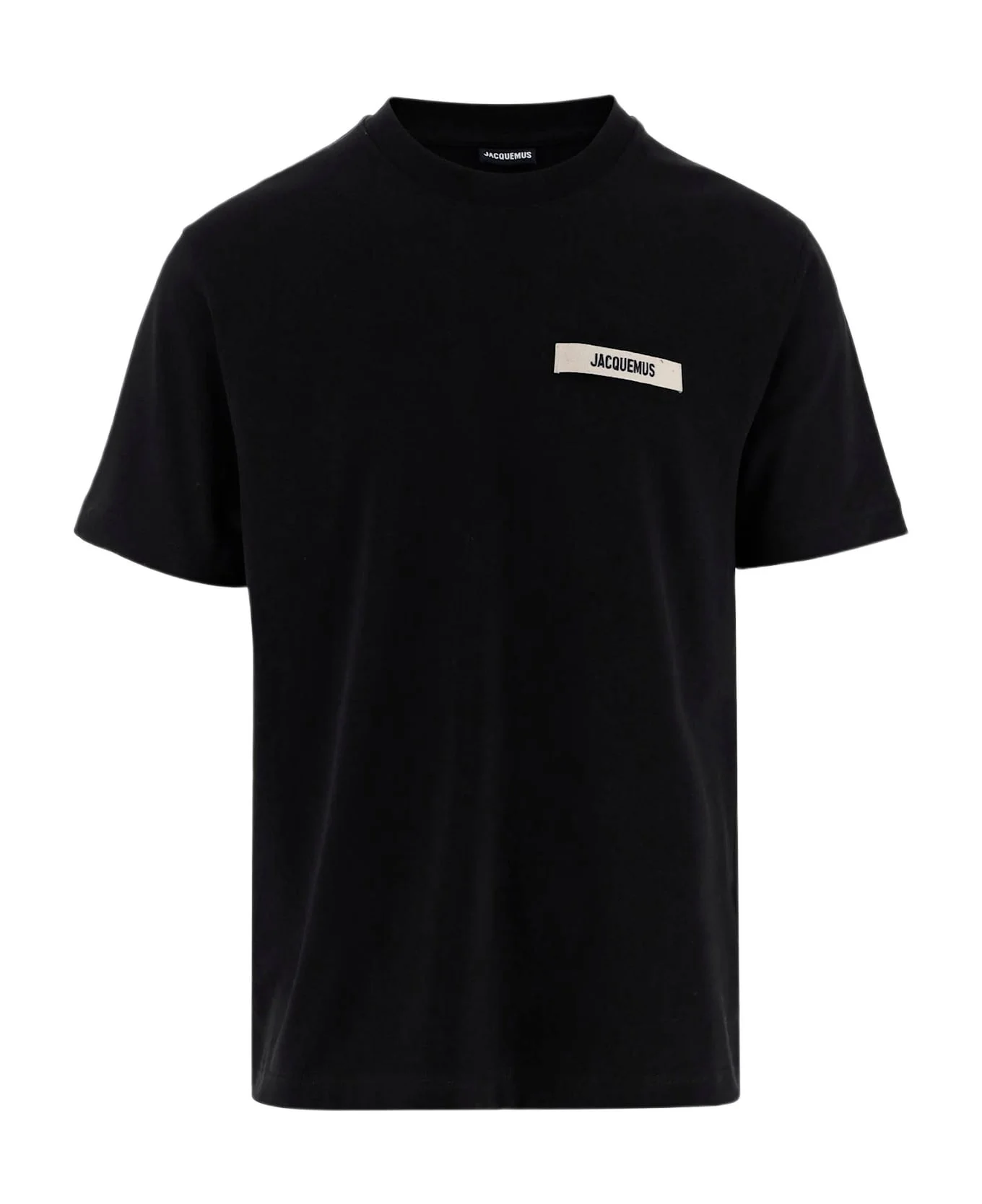 Cotton T-shirt Ribbed crew neck Short sleeves Embroidered grosgrain logo on the chest Black Made in Portugal Composition: 100% cotton Made in: Portugal Color: Black Size and fit: - The model is wearing a size M. - Model measurements: - Height: 185 cm - Chest: 94 cm - Waist: 75 cm - Hips: 93 cm - Shoulders: 48 cm Model number: TSM00133AJ00226990