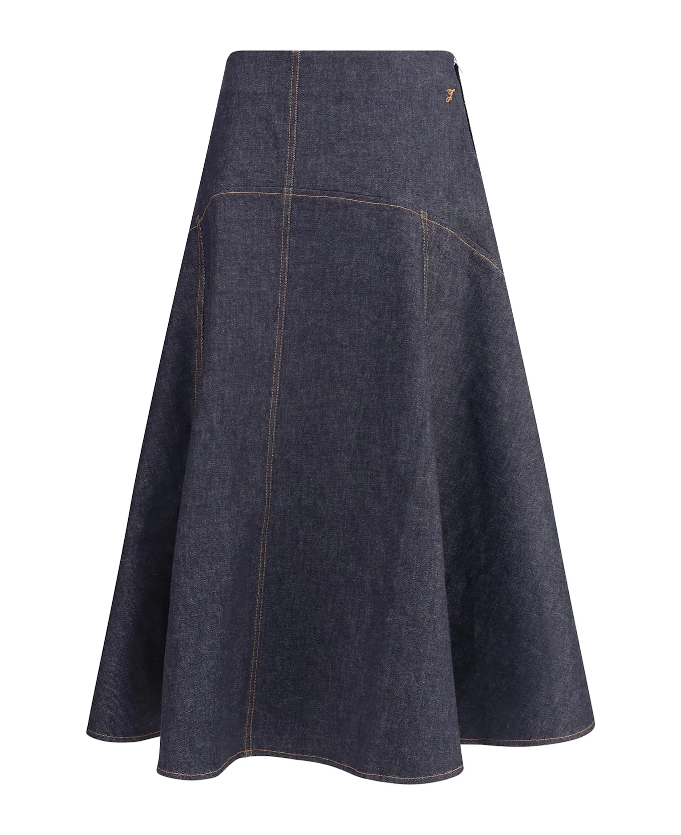 The denim midi skirt by jacquemus is a flared design with contrast stitching that enhances its structure. featuring 'j' embroidery on the side and a side zipper closure, it combines a distinctive touch with a versatile, contemporary design. Composition: 100% % Cotton Made in: Romania Color: BLUE Model number: SKW00639AD00041390