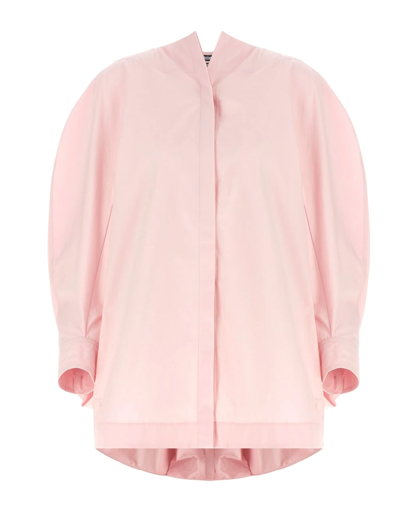 Compact cotton poplin 'La Chemise Pittore' shirt with boat neckline, tone-on-tone logo embroidery and concealed front button closure, long wide and curved cuffed sleeves, side button slits, draped panel and back balloon hem, and asymmetrical hem. Composition: 100% cotton Made in: France Color: Pink Size and fit: - relaxed fit - FRENCH size Model number: 26ESHW00557AW00648410
