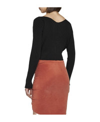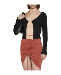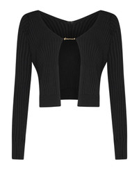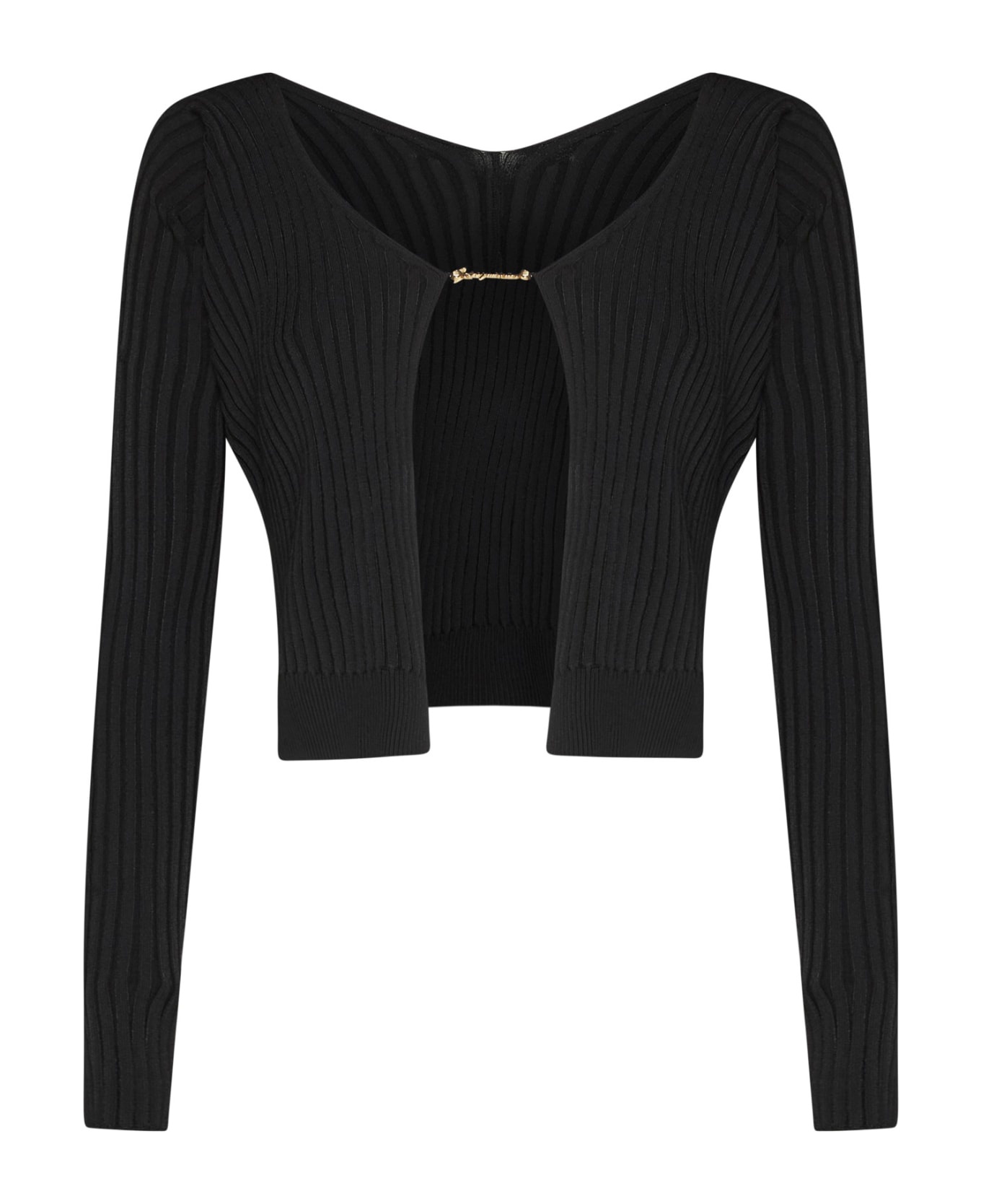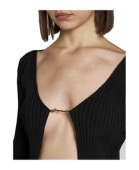 'la Maille Pralu Longue' Black Ribbed Cardigan With Logo Charm Woman