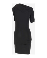 Mini dress made of viscose blend Asymmetrical boat neckline with drape Three-quarter sleeves with ruffled details on the right side Slim fit Black Made in Portugal Composition: 71% viscose, 21% polyester, 8% elastane Made in: Portugal Color: BLACK Model number: DRW00143AJ00136