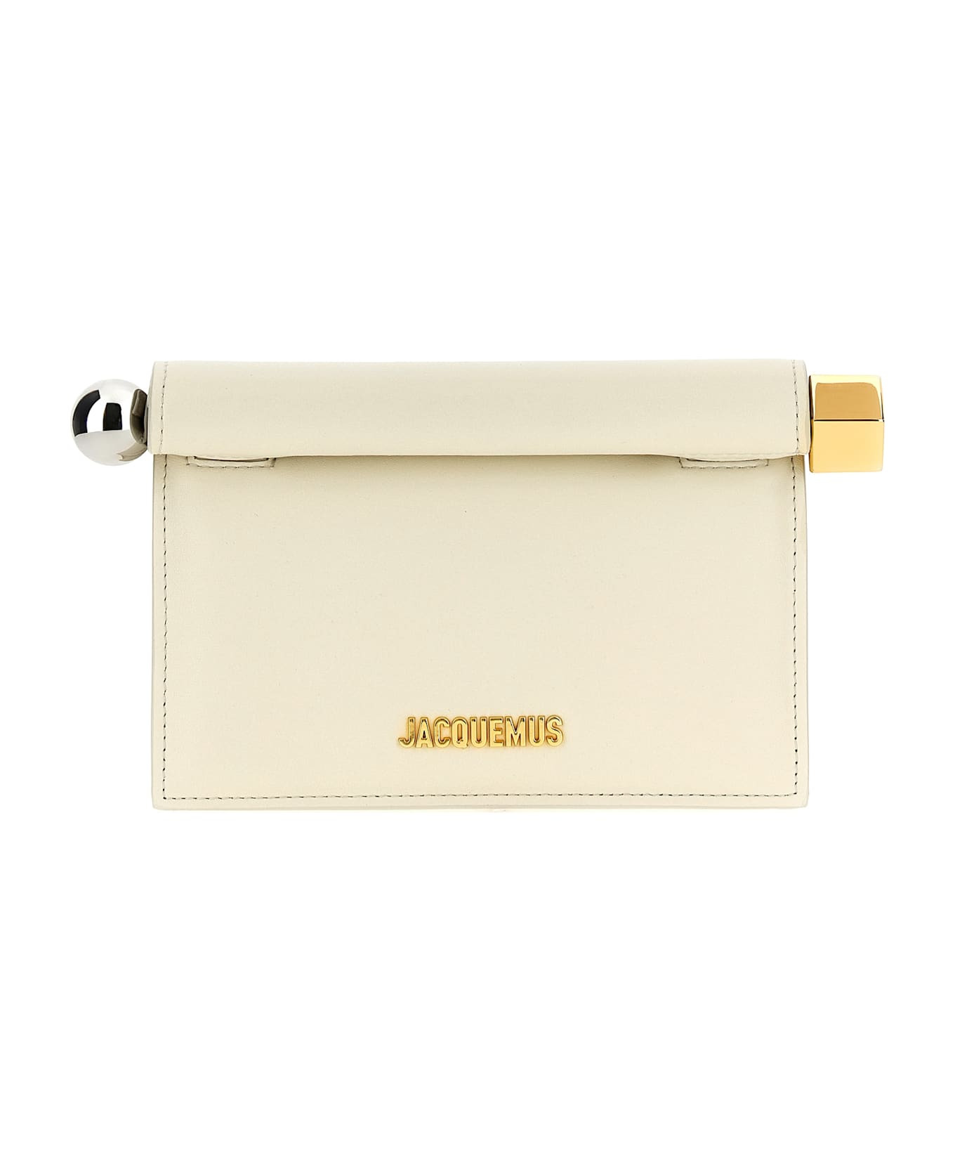 'La Petite Pochette Rond Carre' nappa clutch bag, front metal lettering logo, folded magnetic closure, metal ball and cube detail, back pocket, chain shoulder strap. Composition: 100% lamb leather (Ovis aries) Made in: Italy Color: White Size and fit: - W 19.4 x H 12.5 x D 6.6 cm Model number: 24EBAW00392AC27L14115