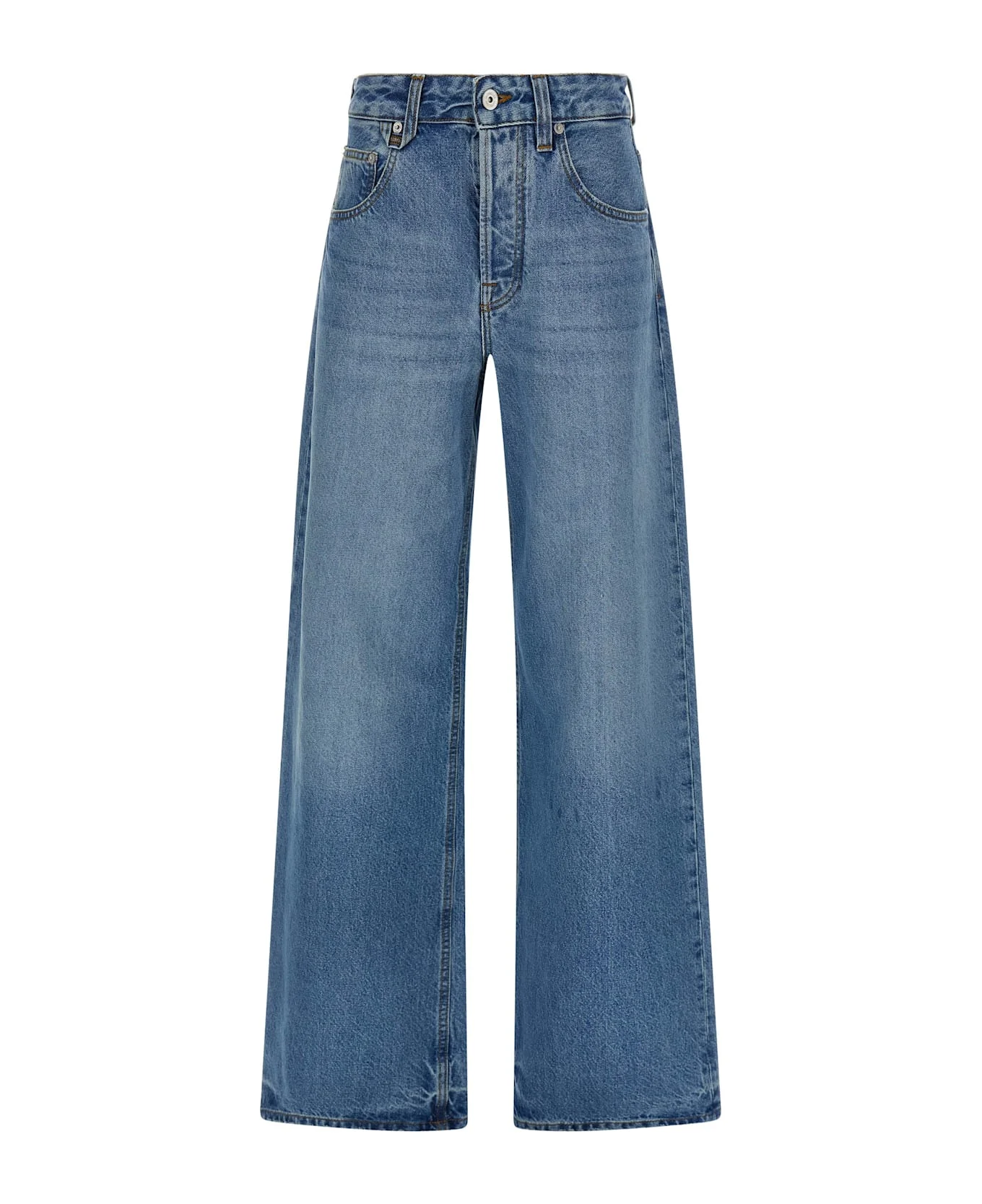 'Le De-Nimes Large' medium washed cotton denim jeans, contrast stitching, mid waist, wide and straight leg, five pockets, laser logo print at the back, front button closure, tone-on-tone logo label at the back. Composition: 100% cotton Made in: Italy Color: Light Blue Size and fit: - oversize fit - FRENCH size Model number: 25HPAW00036AD0003833C